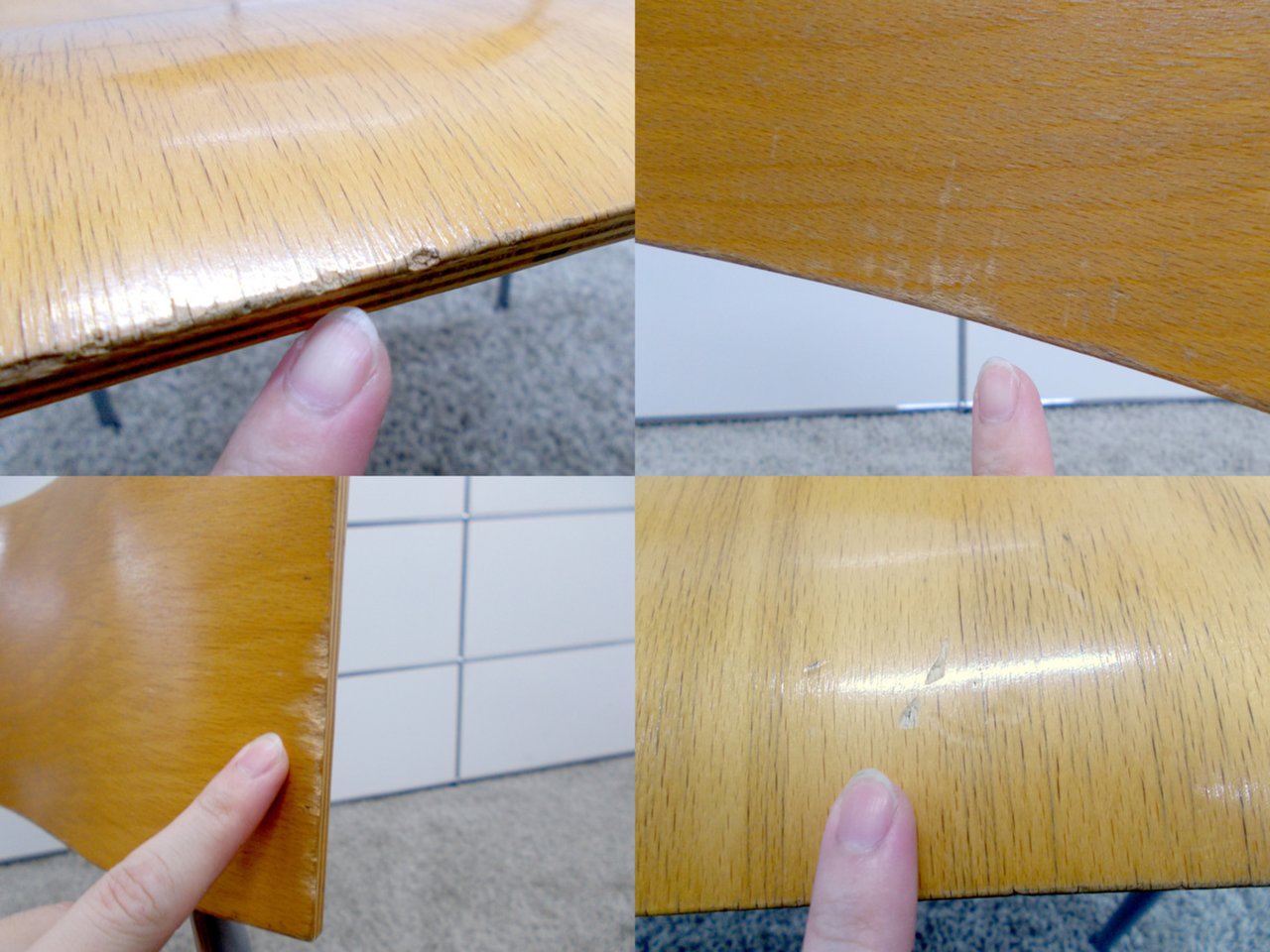 - 目立つ箇所あり傷・破れ・ほつれ・へたり・しわが多数または深い傷・破れ・ほつれ・へたり・しわが一部ある。※座面・背もたれ、シェル、脚部等にある。