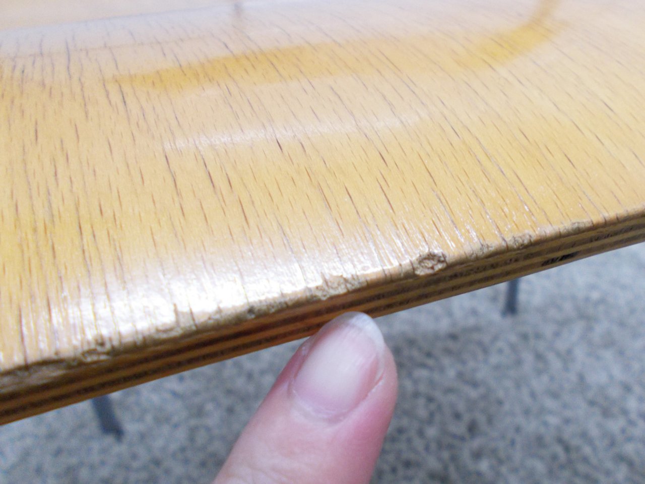 - かなり強い濃い黄ばみ・変色が商品全体にある。(例、座面・背もたれ、脚部等にある。)