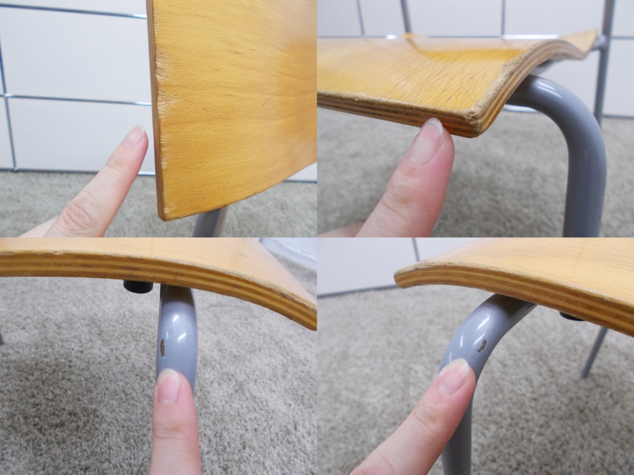 - 目立つ箇所あり傷・破れ・ほつれ・へたり・しわが多数または深い傷・破れ・ほつれ・へたり・しわが一部ある。※座面・背もたれ、シェル、脚部等にある。