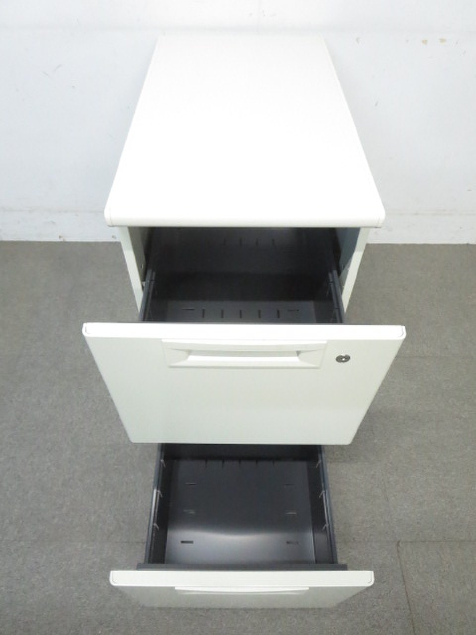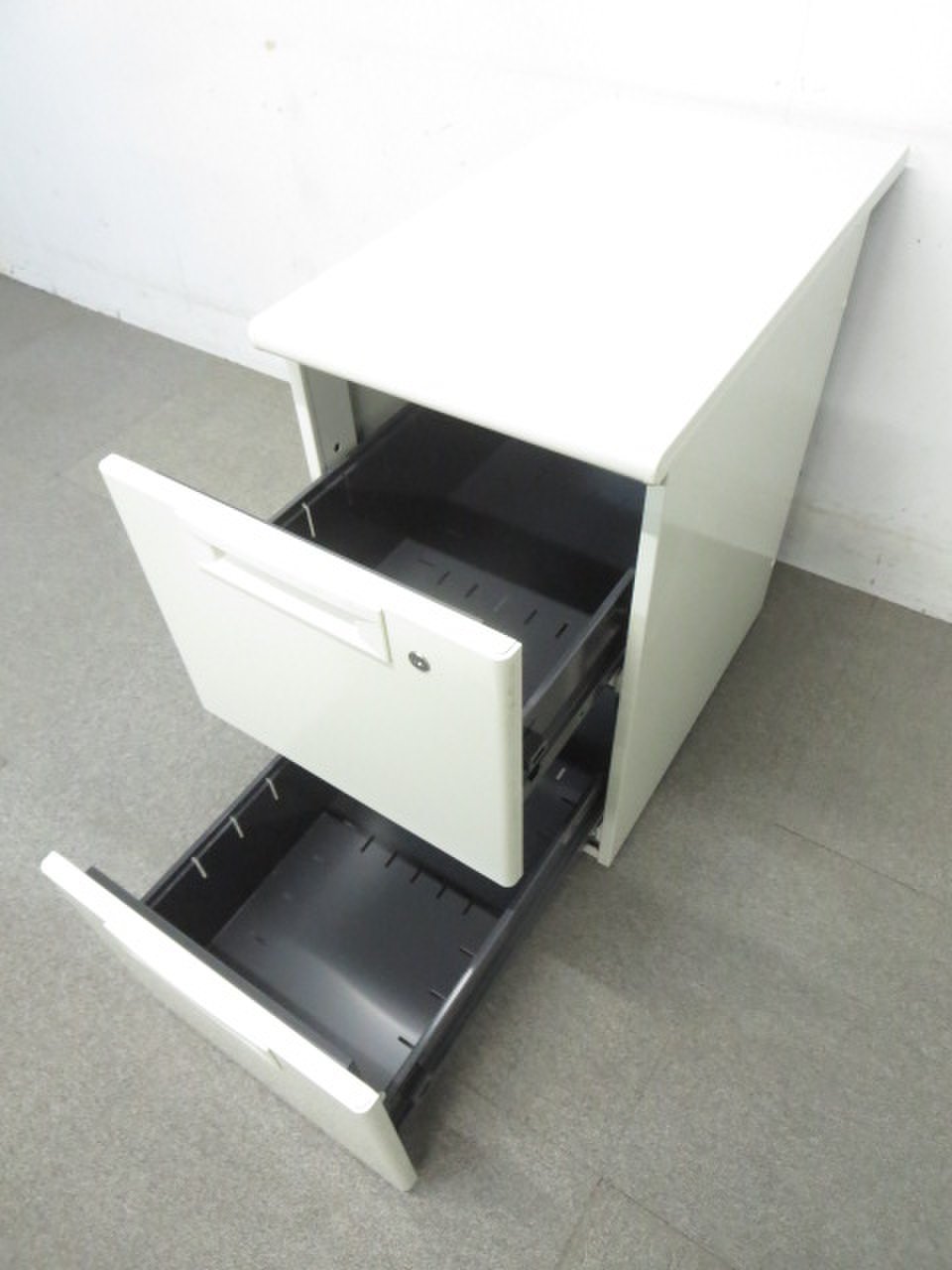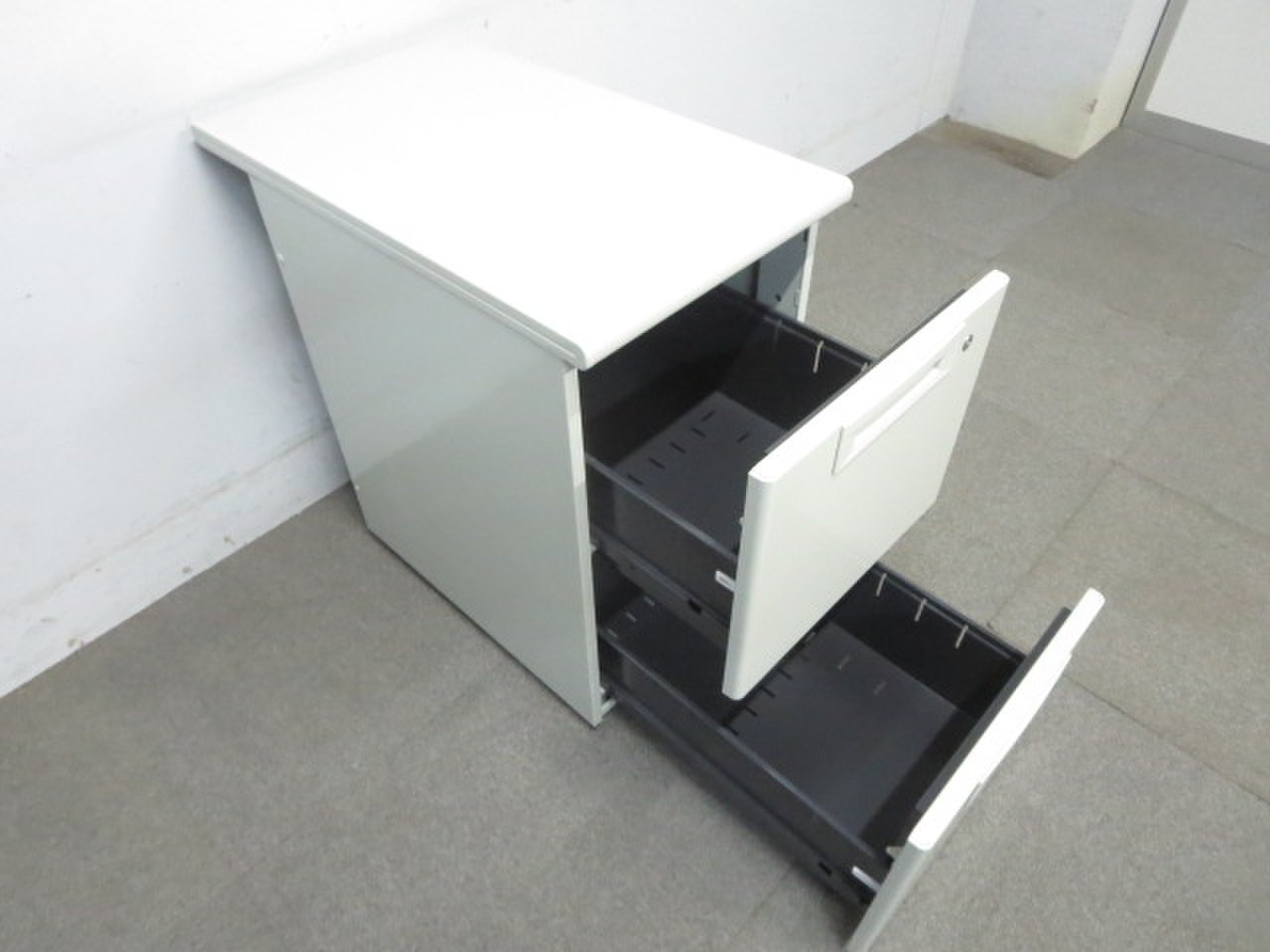 - 一部不具合ありその脇机・ワゴンの本来の効用を果たすための機能以外の一部が使用不可な状態。(例、引出が開閉しづらい、 キャスターロック機能使用不可、ラッチ不良 等がある。)