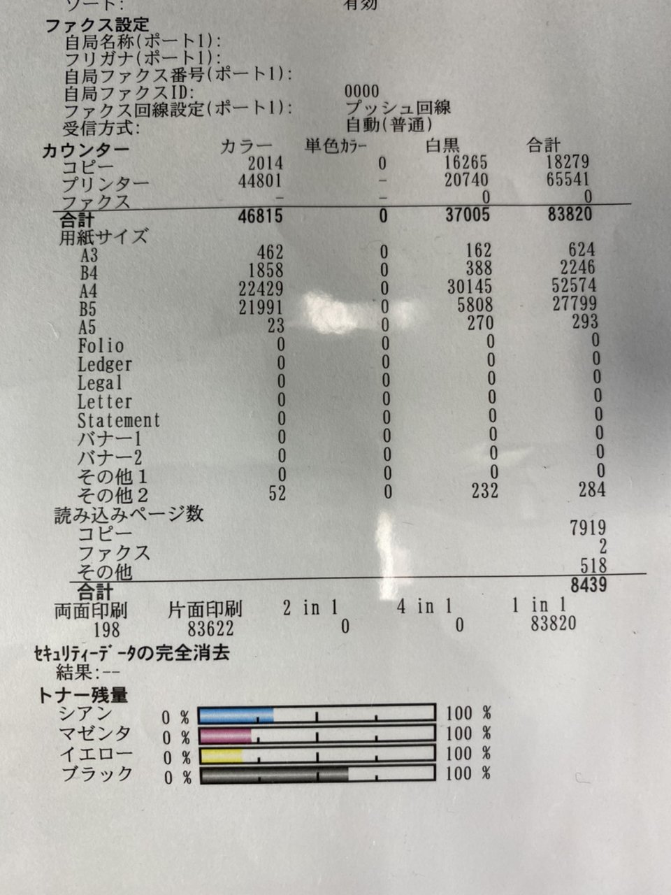 | スキャナ読取速度[A4] | 片面原稿(300dpi):(カラー)80ページ/分 (白黒)80ページ/分 両面原稿(300dpi):(カラー)160ページ/分 (白黒)160ページ/分 |