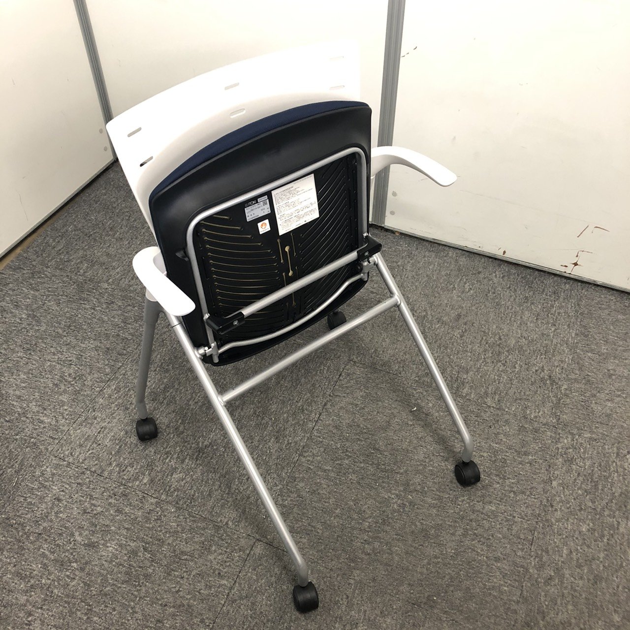 【キャスター付でスイスイ動かせる!】■イトーキ製 マノスシリーズ ネスティングチェア ネイビーブルー 背シェル:オフホワイト【ITOKI MANOSS】