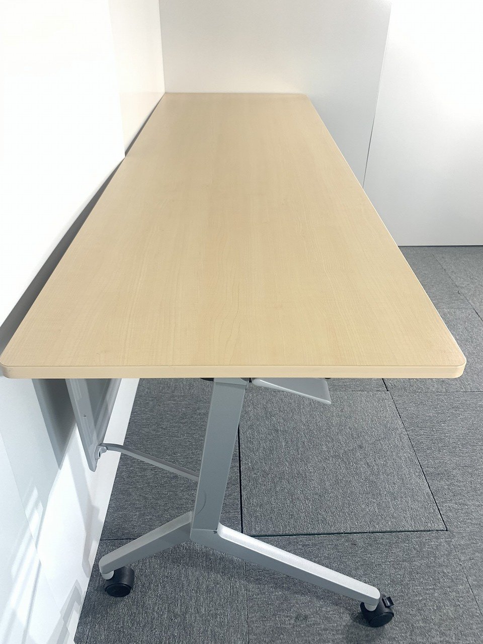 【会議・研修室などに・使わないときは畳んで省スペース!】■コクヨ(KOKUYO)製 リーフライン(Leafline)シリーズ サイドスタックテーブル フラップテーブル W1800×D600㎜ ■木目ナチュラル天板 ■幕板付き 【2~3名での使用に最適】
