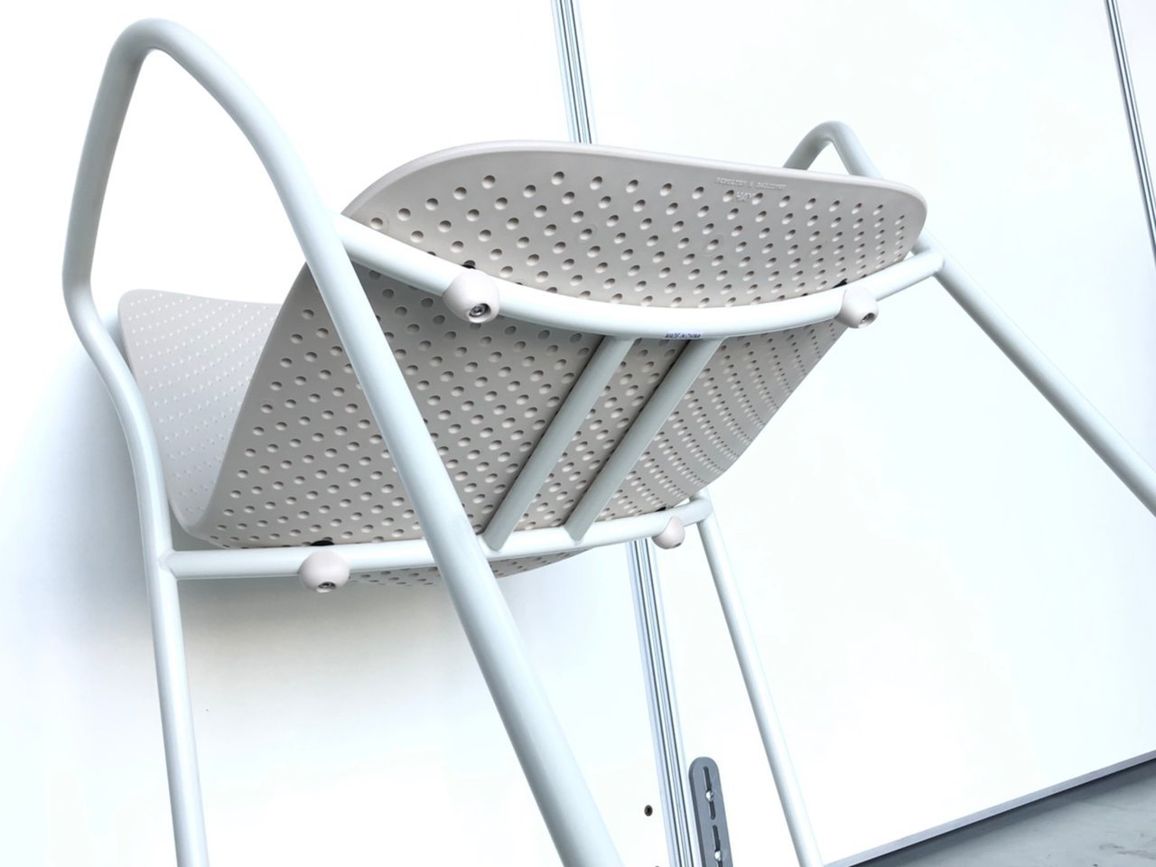 「13EIGHTY ARMCHAIR」はポリプロピレン樹脂のシートに開けられた穴の数が由来。