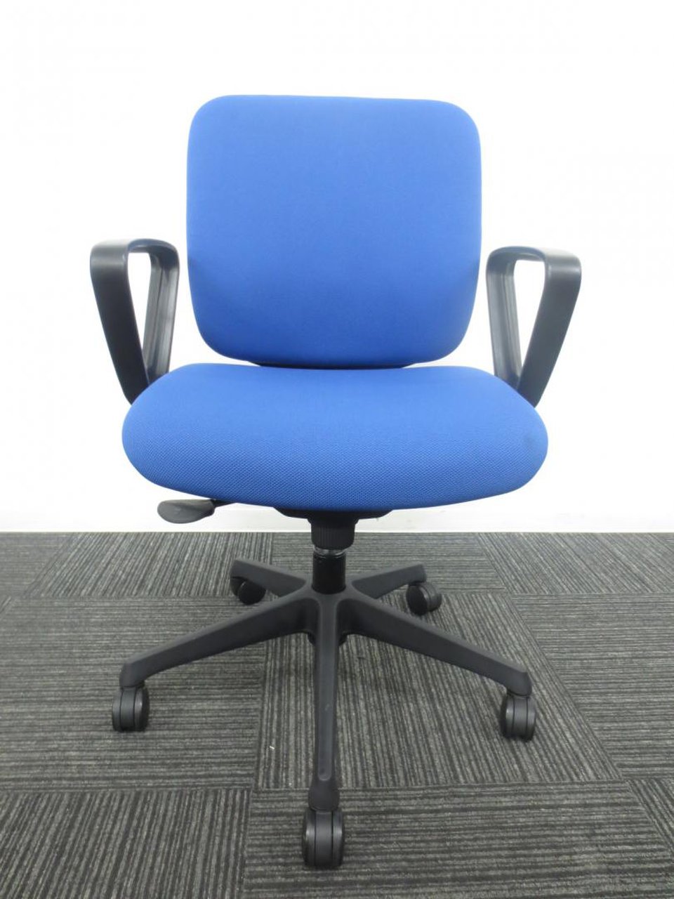 【ふっくらクッションが心地よい!】■オカムラ製 オフィスチェア CG-Rシリーズ 肘付 ブルー- 川崎店