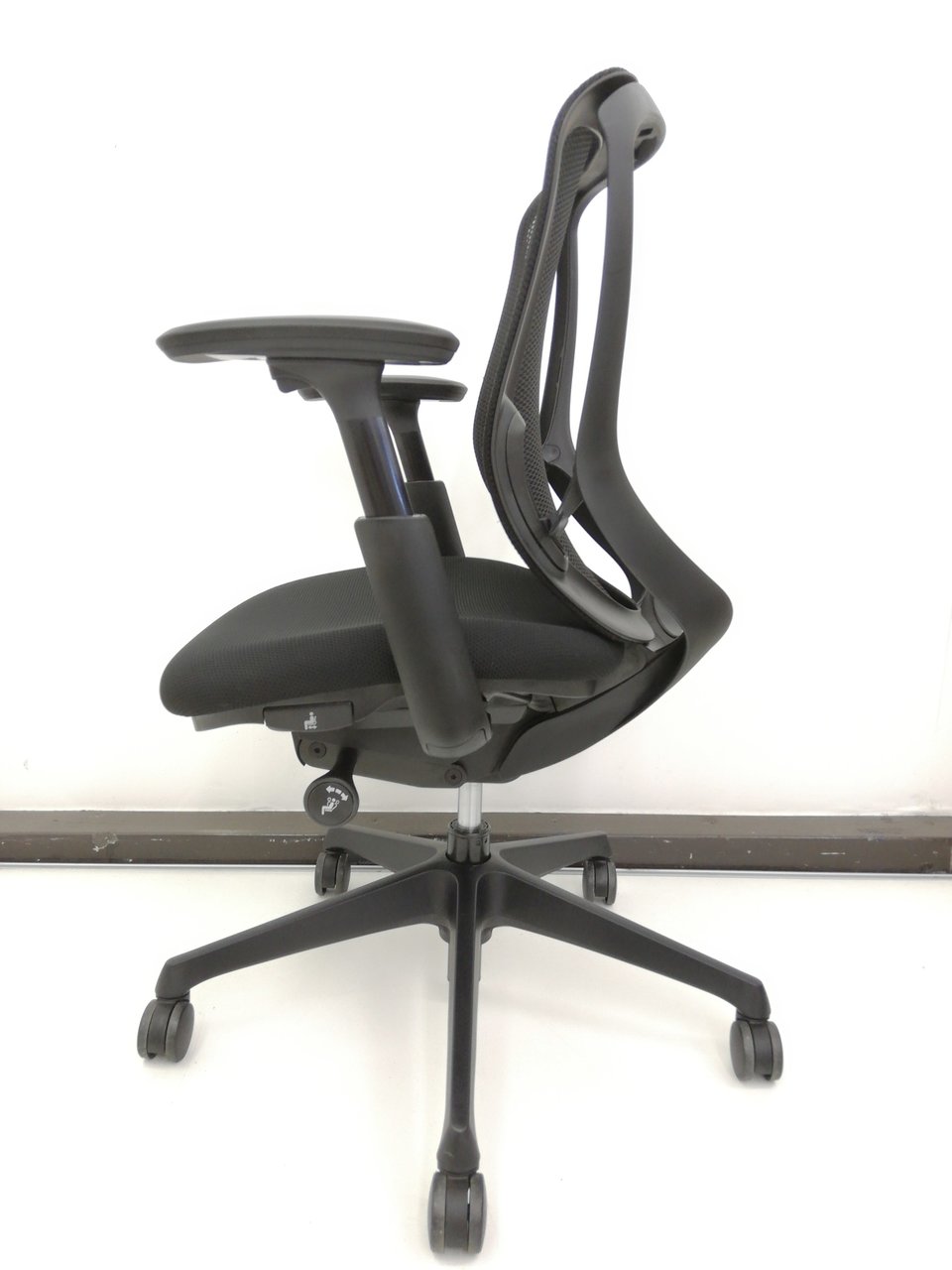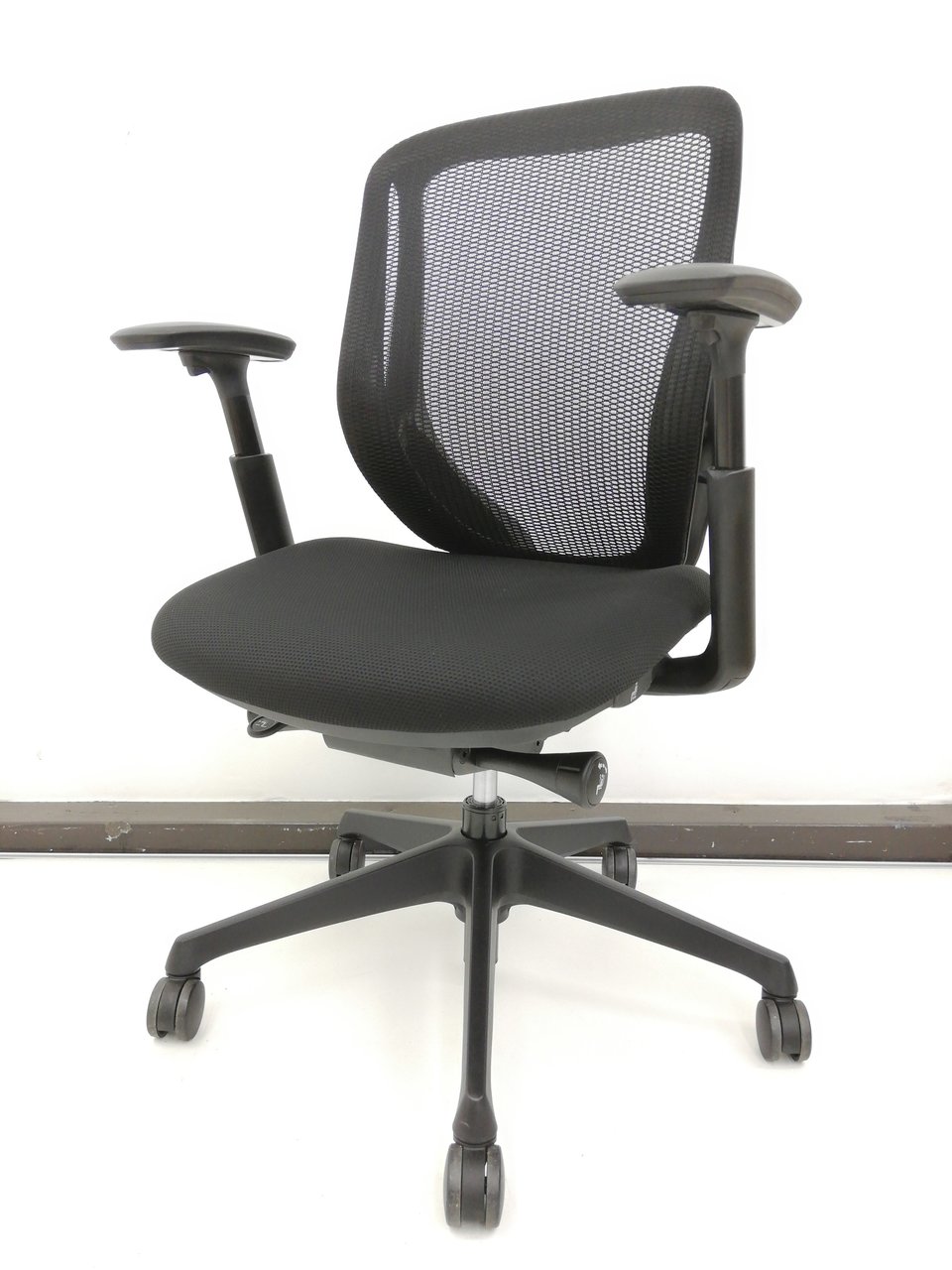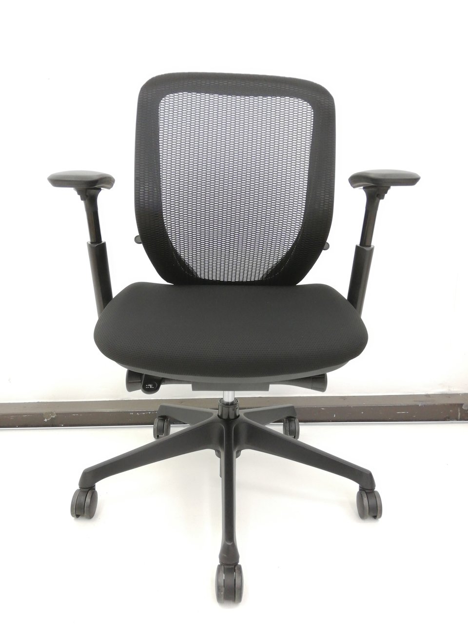 【2016年製】テレワークおススメ前傾姿勢OK!漆黒オールブラックシルフィー(Sylphy)チェア※可動肘タイプ◆オカムラ製- 春日部・越谷店