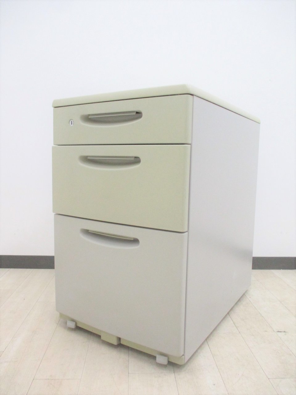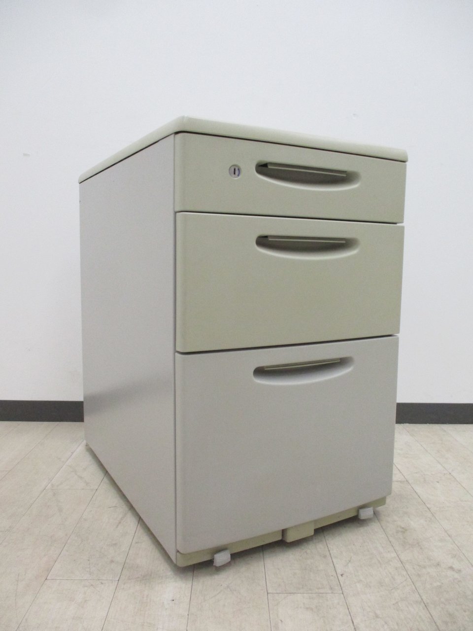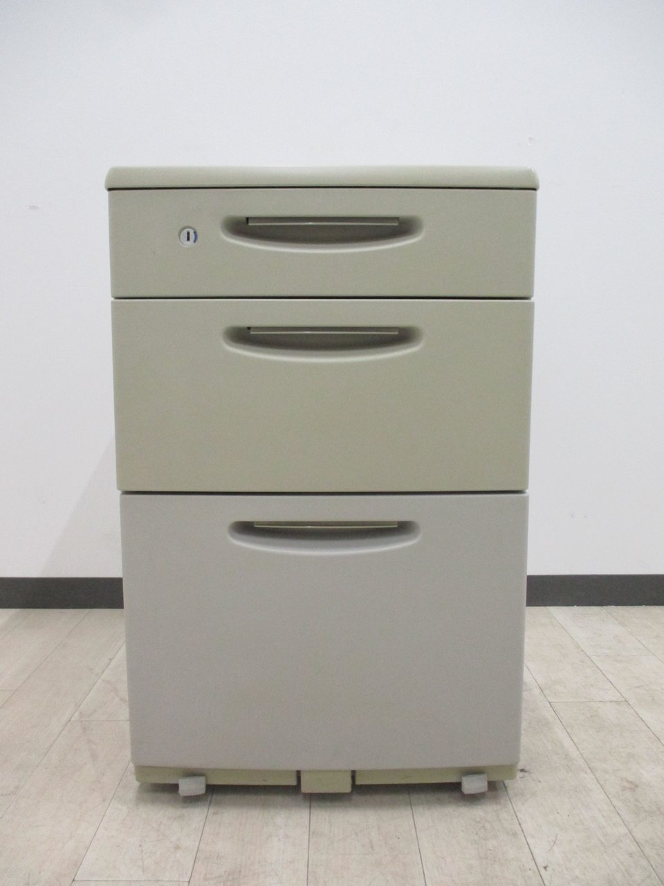 【日焼け有りの為特別価格!】オカムラ製の3段ワゴン!ラッチ機能付き!- つくば店