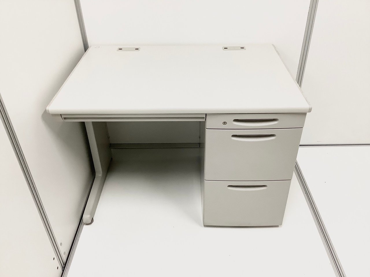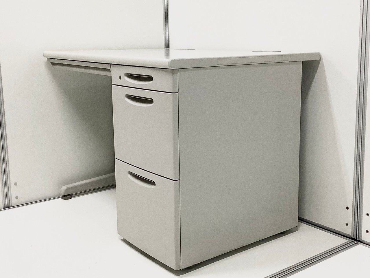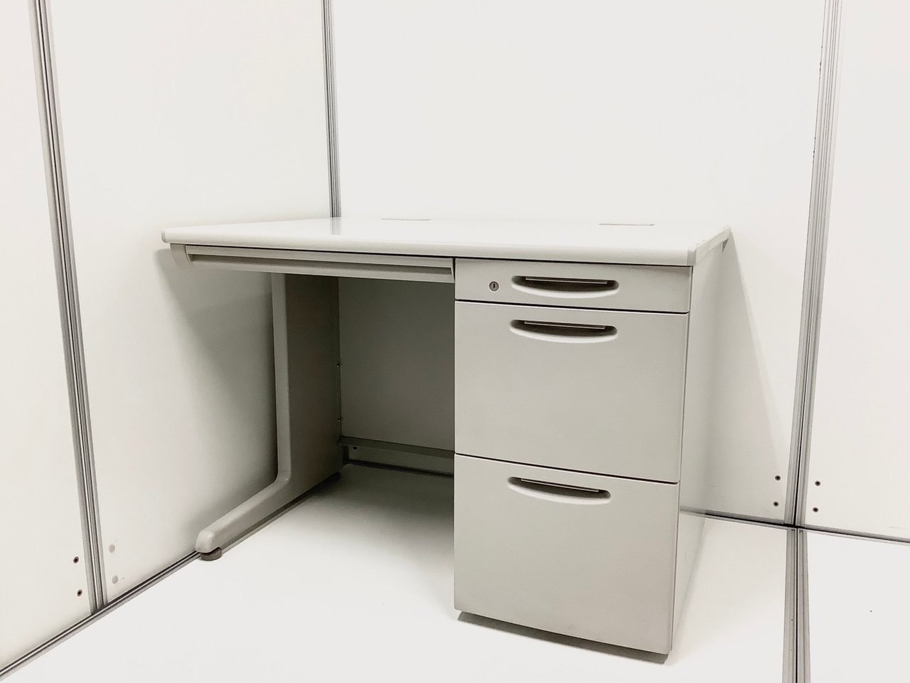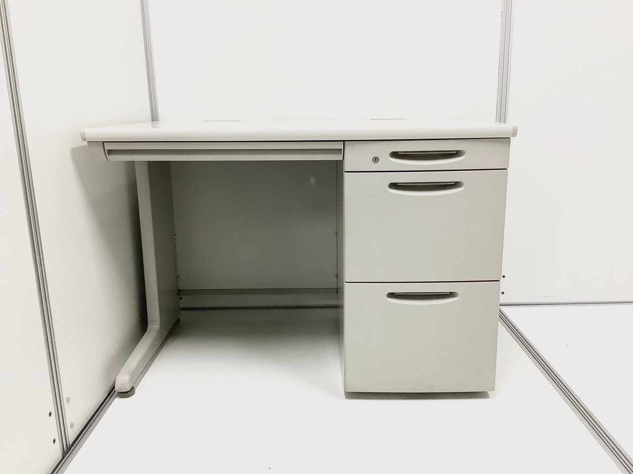 【コンパクトでスタンダード!使いやすい引き出し付きデスク!】■オカムラ(okamura)製 SD-Vシリーズ 平机+ワゴンセット(片袖机) 引き出し付き W1000㎜ ■ライトグレー ※ワゴンは在庫状況によって変動致します。