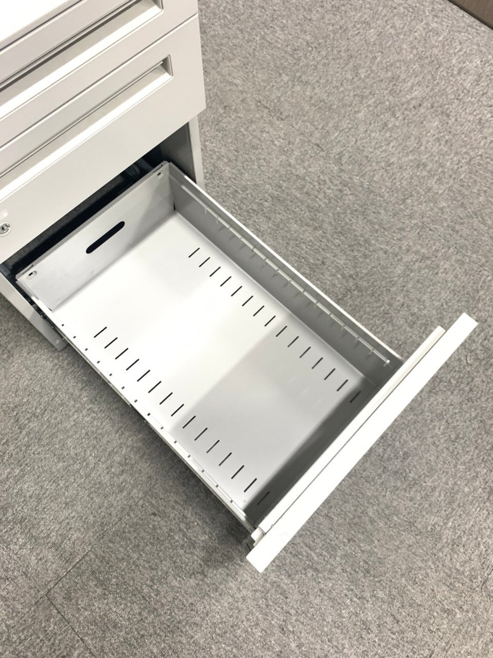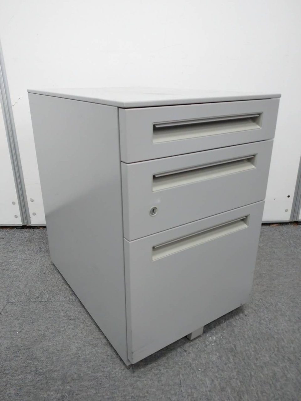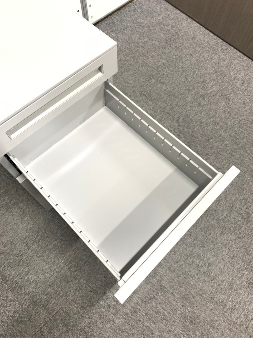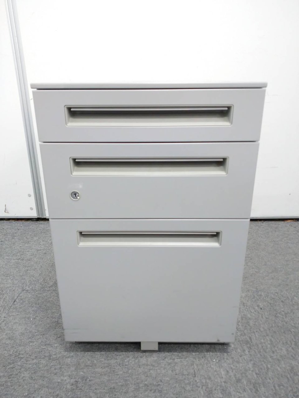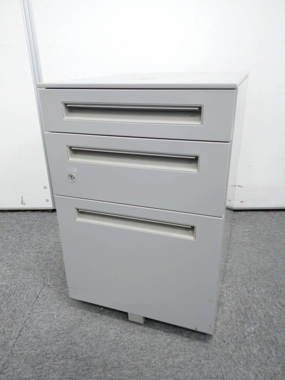- 一部不具合ありその脇机・ワゴンの本来の効用を果たすための機能以外の一部が使用不可な状態。(例、引出が開閉しづらい、 キャスターロック機能使用不可、ラッチ不良 等がある。)