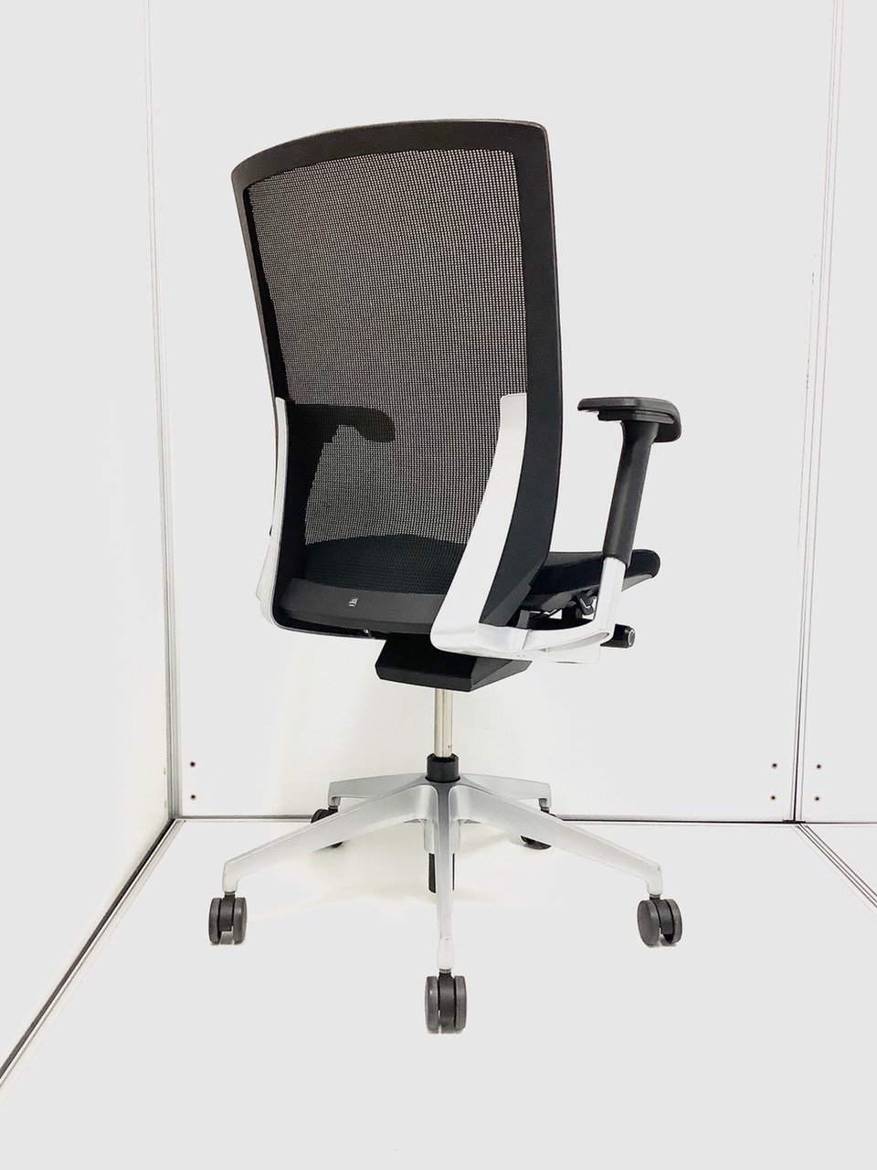カラーバリエーション豊富なプレーンメッシュモデルと、"ストライプレイヤーファブリック"というイトーキオリジナルのメッシュ素材を使ったモデルがございます。ストライプレイヤーファブリック素材では表裏で色が異なるモデルもあり、背中が触れる前面は汚れが目立たない暗めの色合い、背面から見ると明るい色合いで室内が明るい印象になるという便利な仕様となっており、非常に人気の高い製品です。