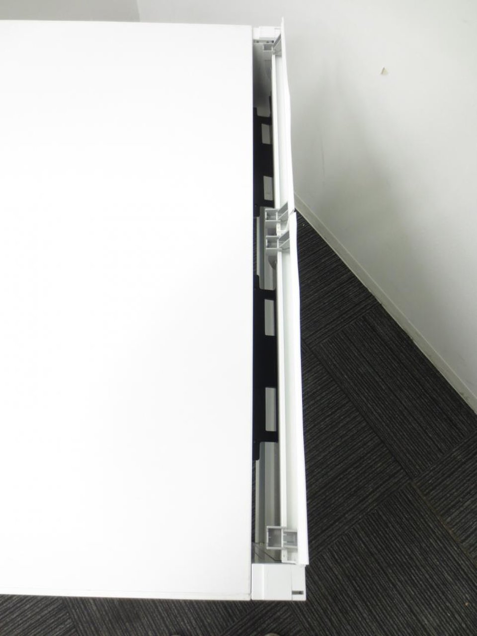 配線カバーが開閉式となっており、ビジネスフォンやパソコンの配線を綺麗に収納可能!