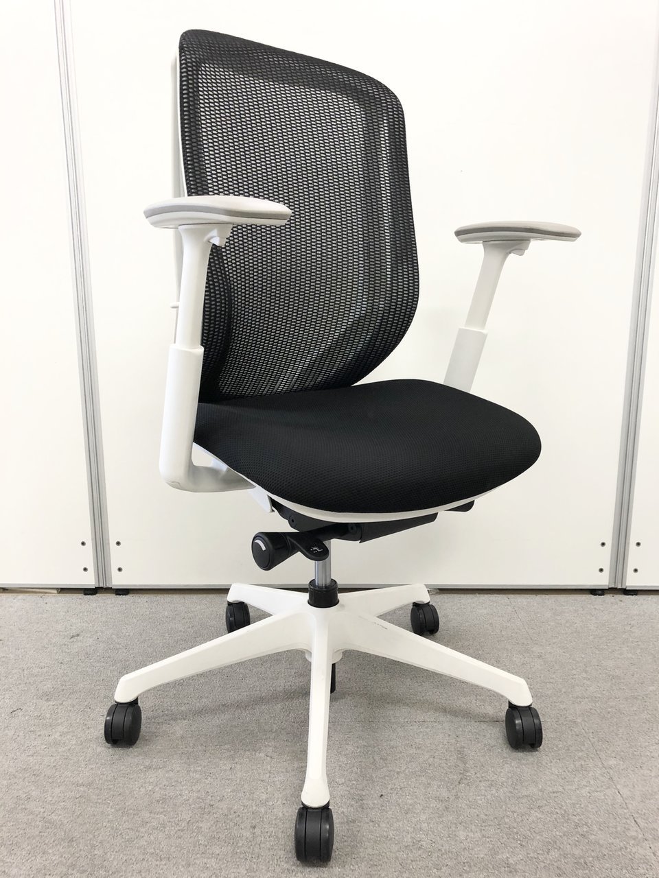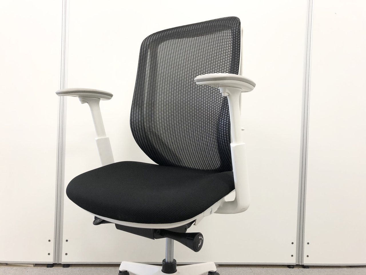 オカムラ シルフィ メッシュ 座面ファブリック 前傾チルト 2018年製 レアなブラック×ホワイトカラー- つくば店