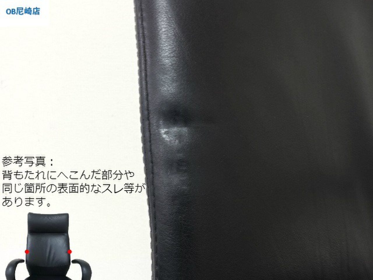- 若干あり傷・破れ・ほつれ・へたり・しわが一部ある。(例、座面・背もたれ、脚部等にある。)