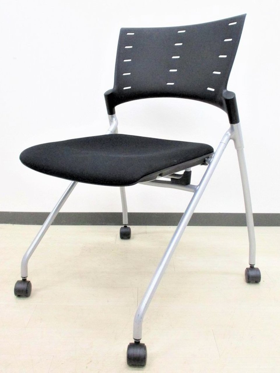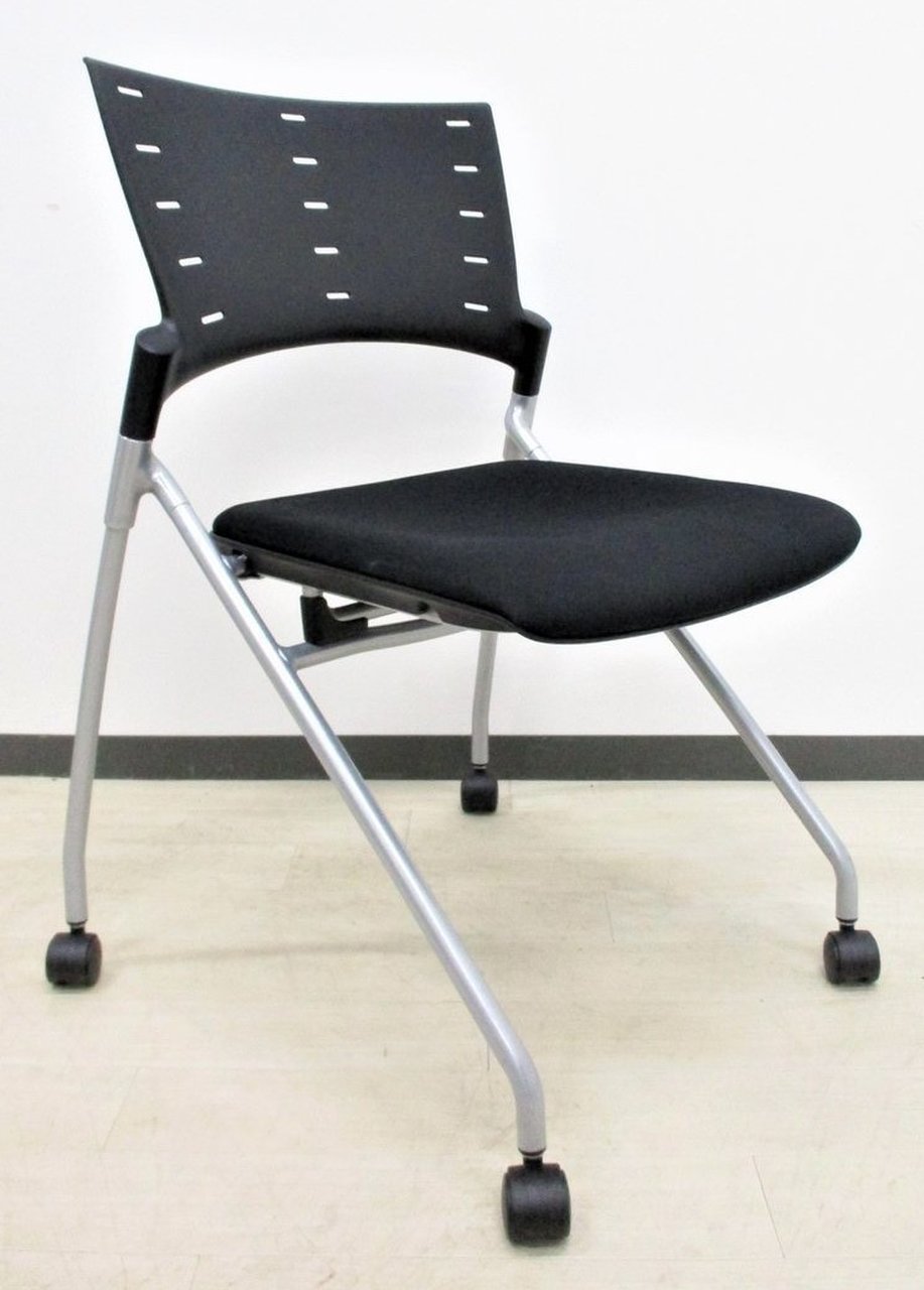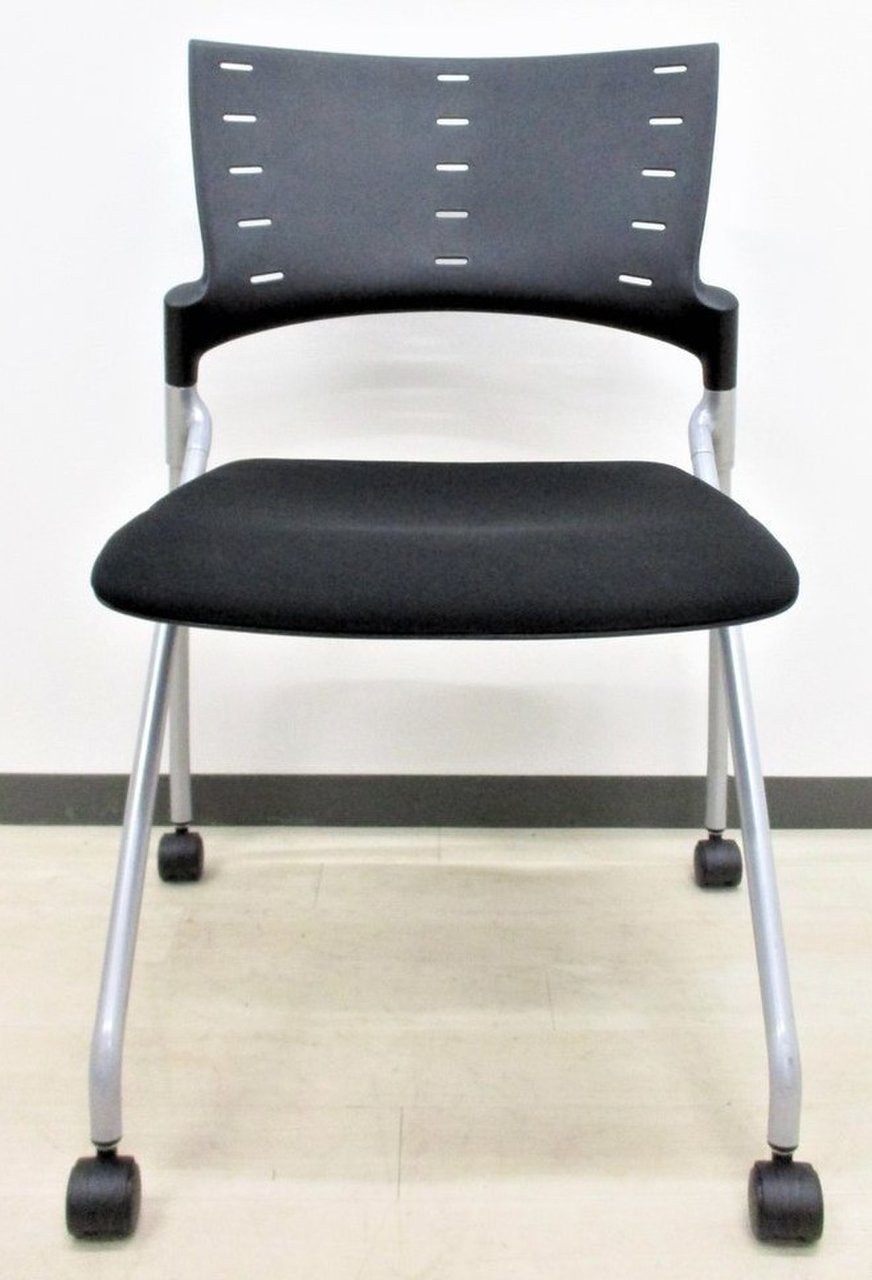 【関西倉庫在庫品】【平行に重ねて省スペース!使い勝手抜群のミーティングチェア!】■イトーキ マノスシリーズ ネスティングチェア 座ブラック 背ホワイト キャスター付【ITOKI Manos】【W】