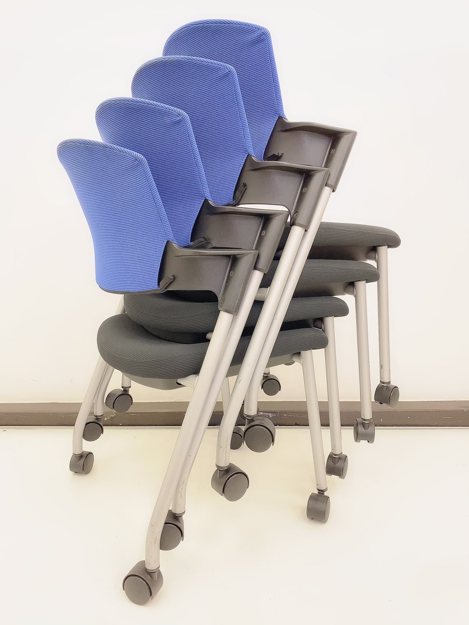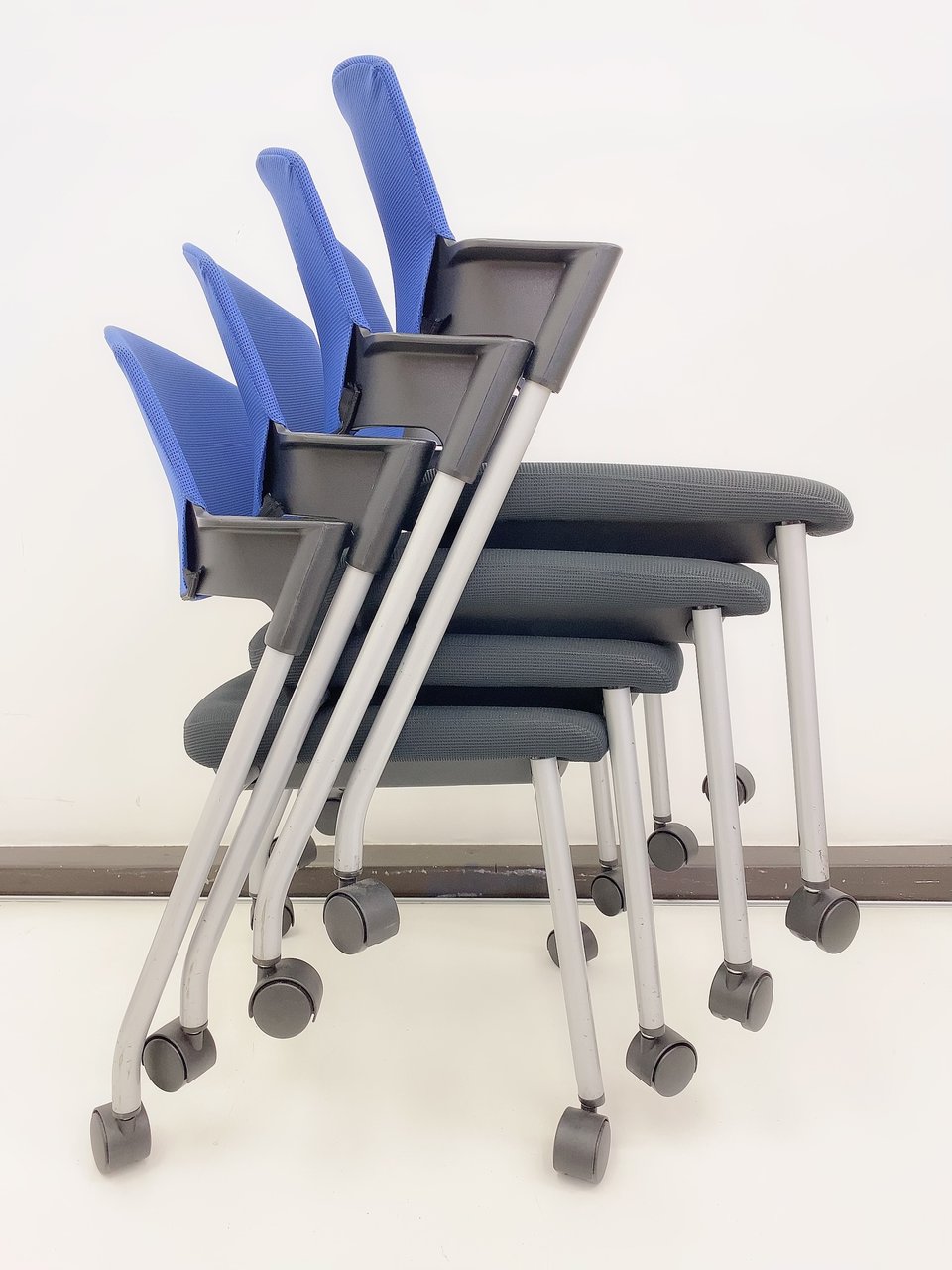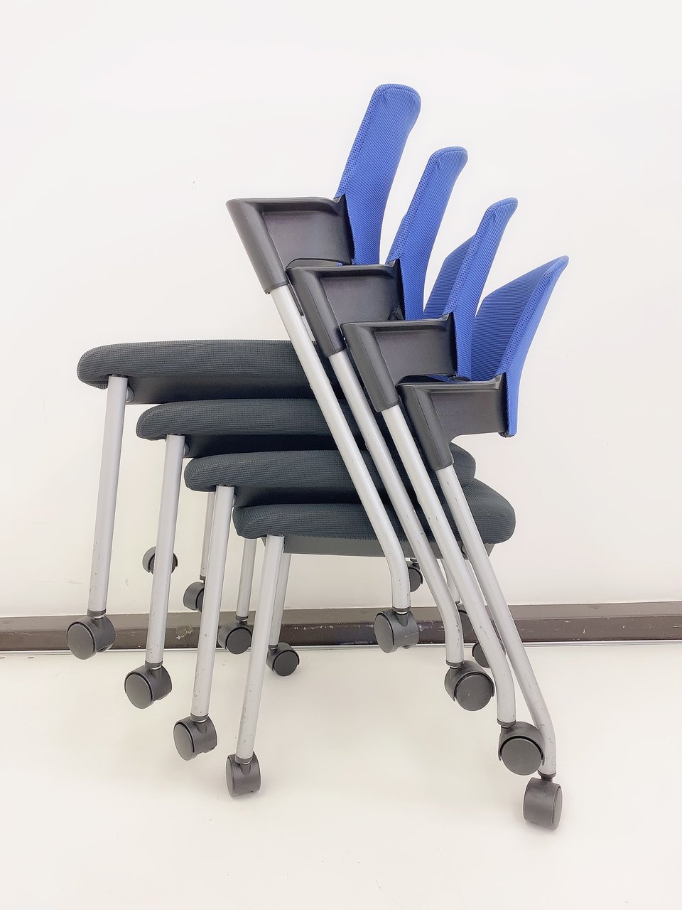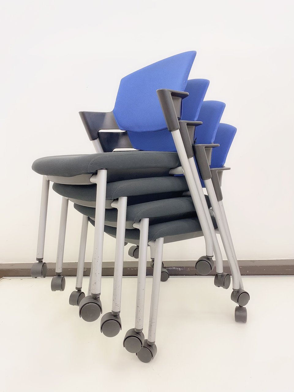 【4脚セット】省スペース片づけカンタンチェア!ブルー&ブラック◆コクヨ製- 春日部・越谷店