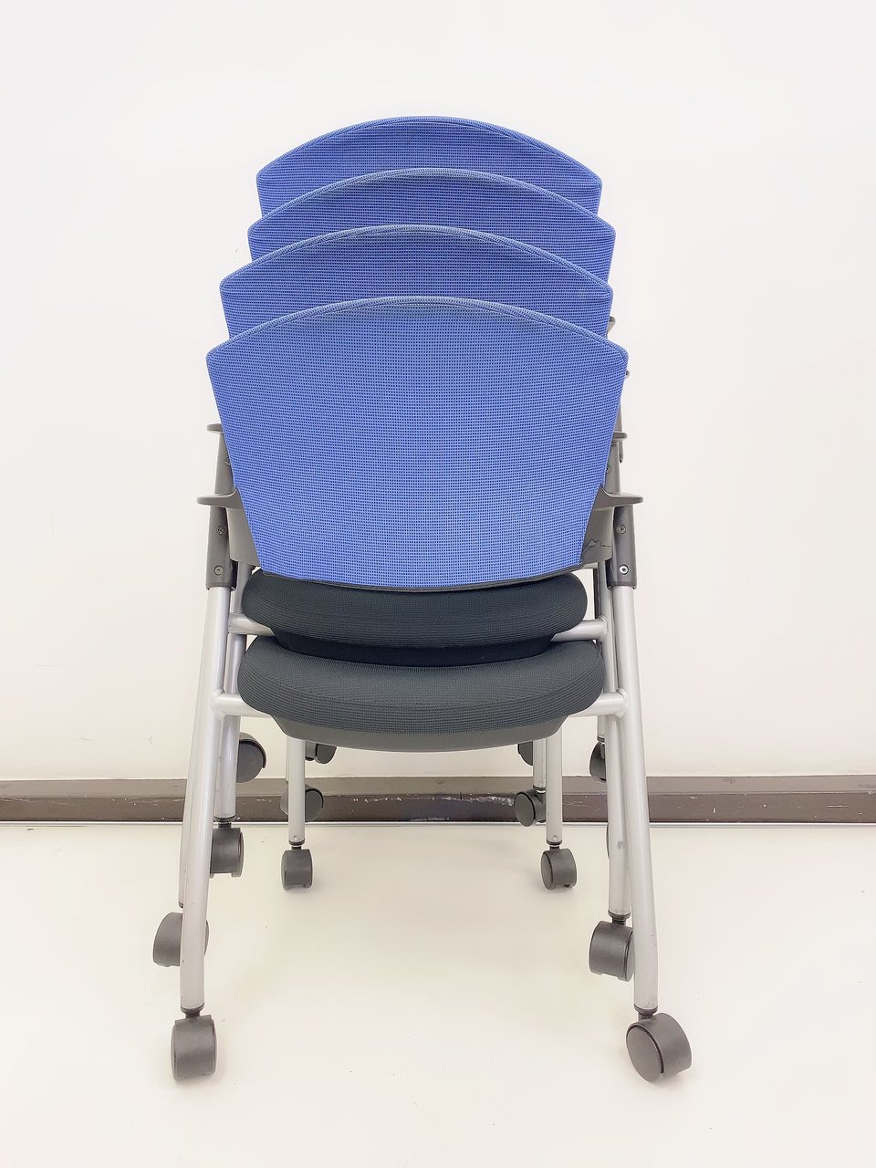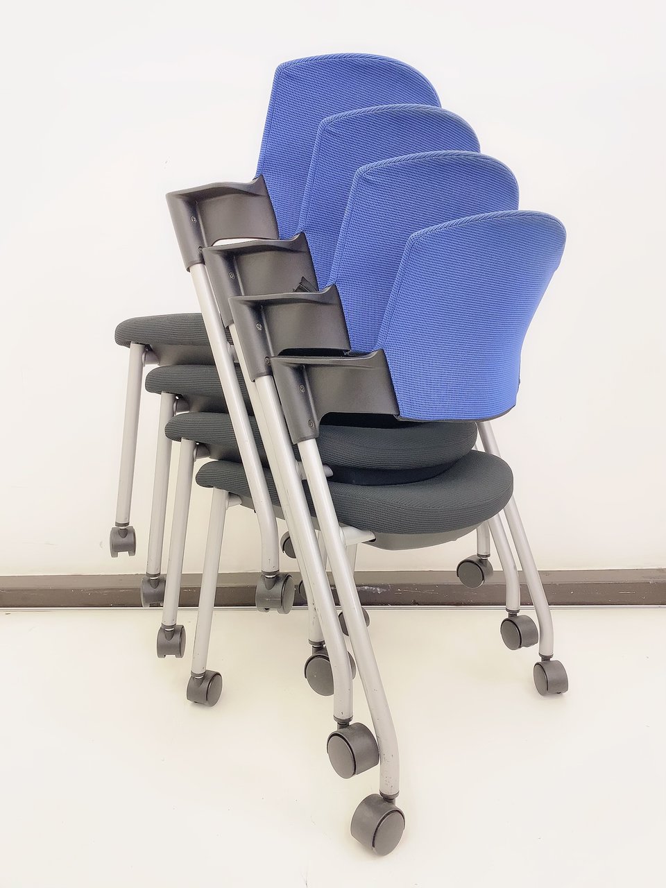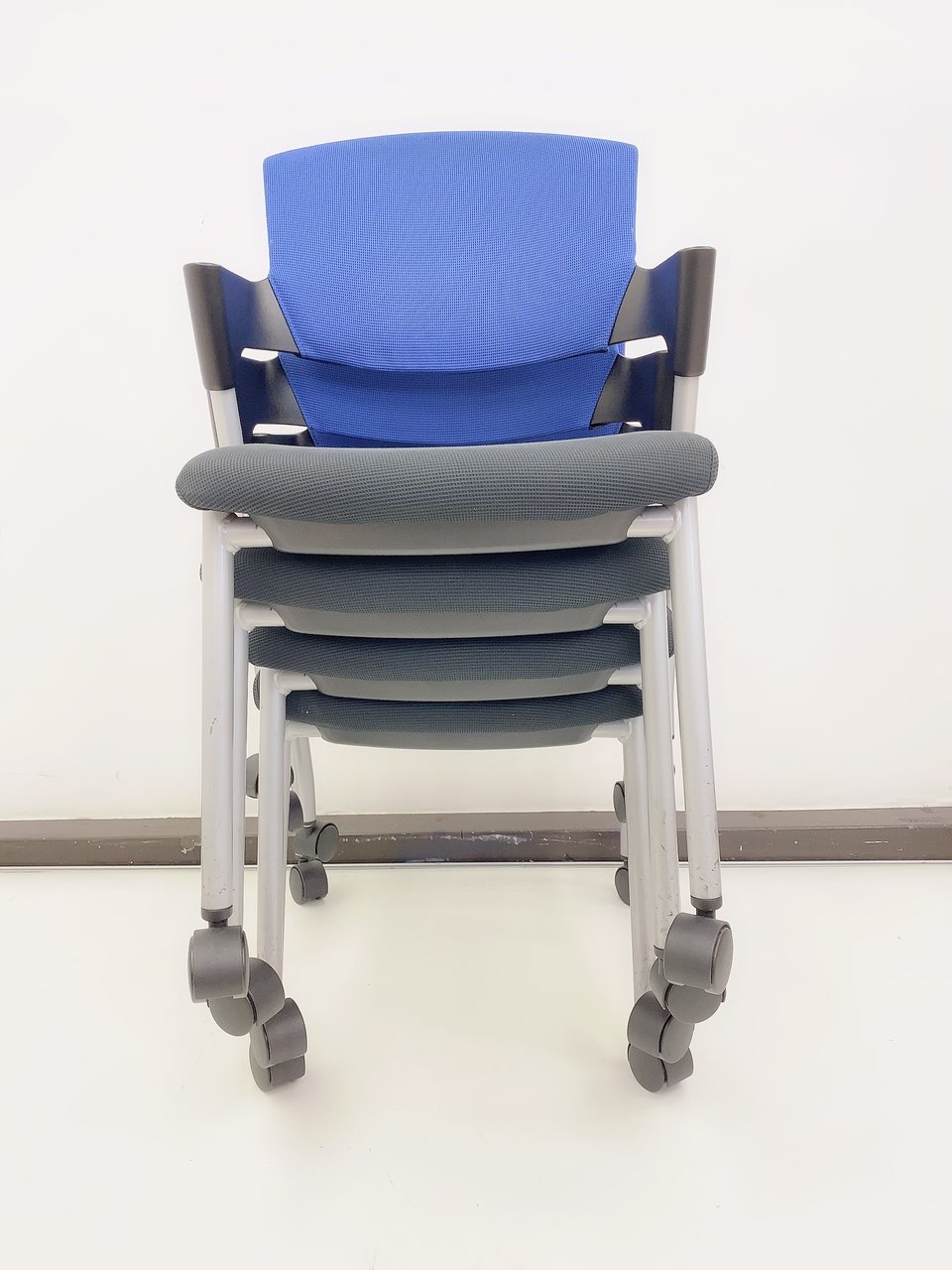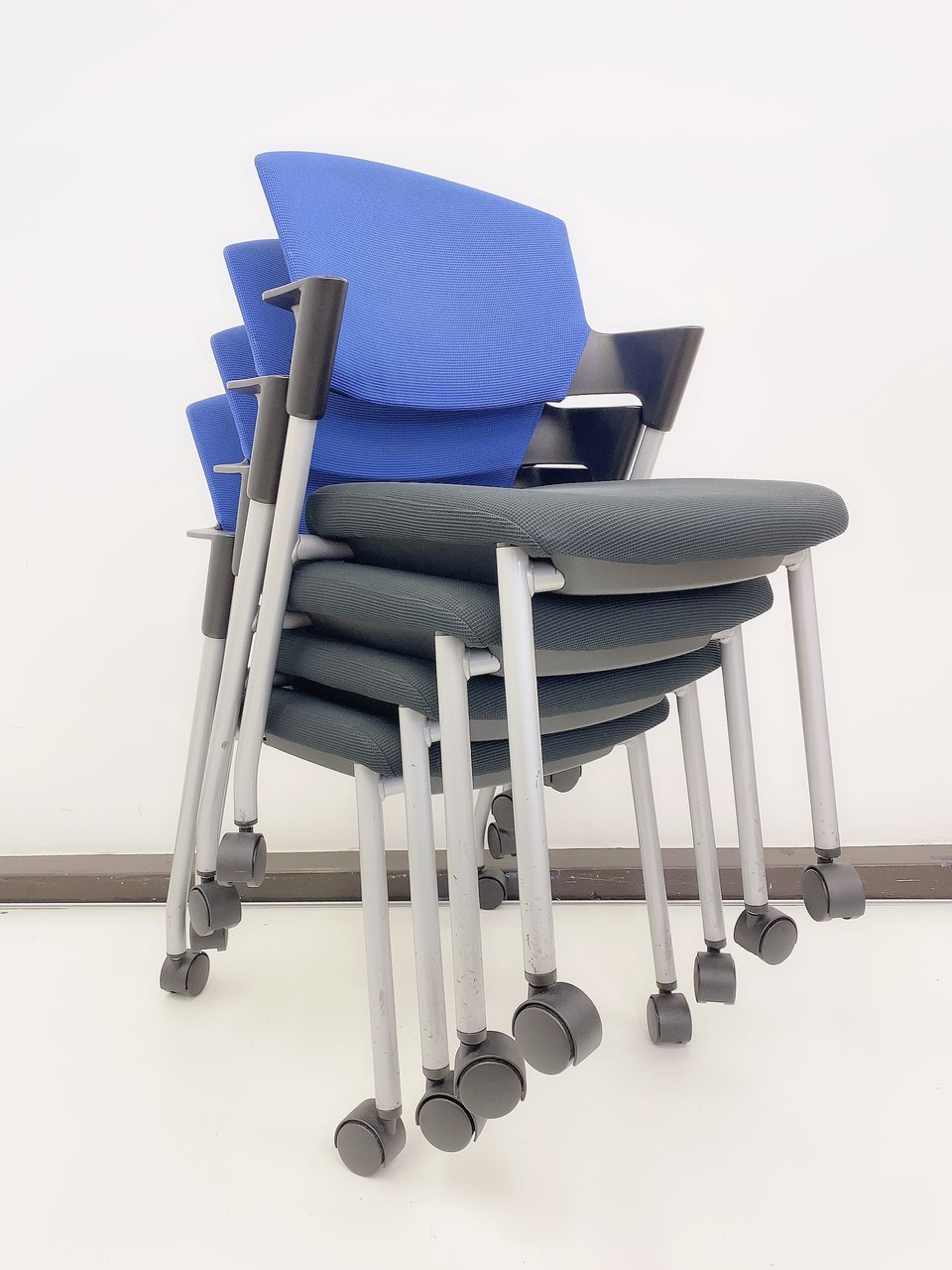 【4脚セット】省スペース片づけカンタンチェア!ブルー&ブラック◆コクヨ製- 春日部・越谷店