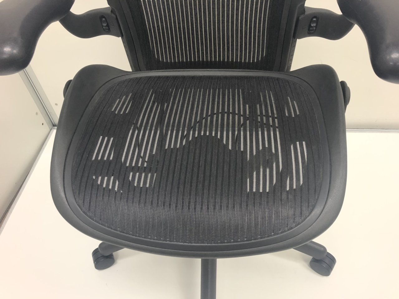 【★肘と脚にスレあり!見た目を気にしなければ使用に問題なし★】ハーマンミラー製 アーロンチェア(スタンダードタイプ) メッシュ 在宅 自宅 ゲーム 海外製 椅子 リラックス 中古家具 中古オフィス 九州最大級《オフィスバスターズ福岡博多店は、福岡を拠点として、日本全国へ中古オフィス用品・オフィス家具を提供しております》