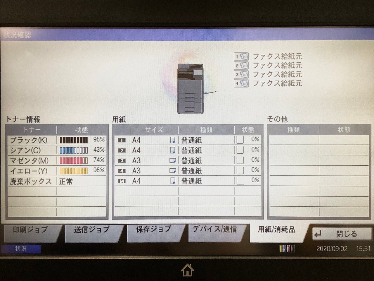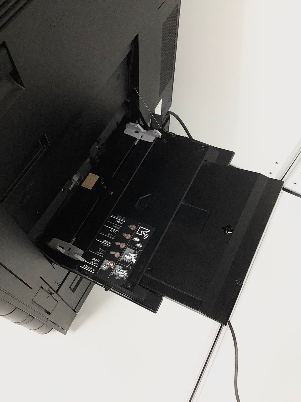 | 給紙容量(最大) | 550枚ペーパーフィーダー(64g/m2)×2段+手差し165枚(64g/m2)、長尺1枚(手差し) |