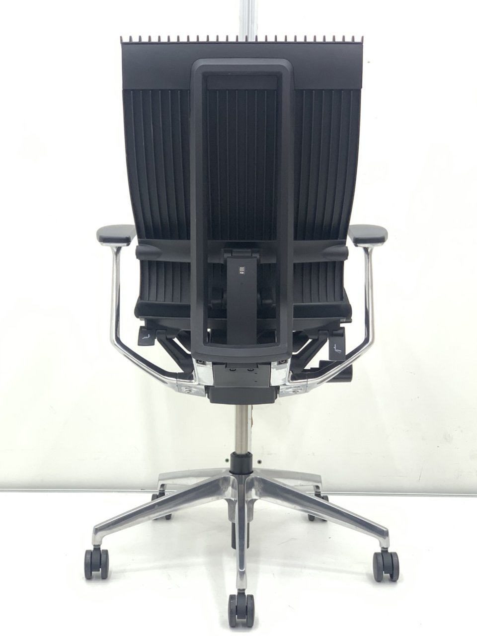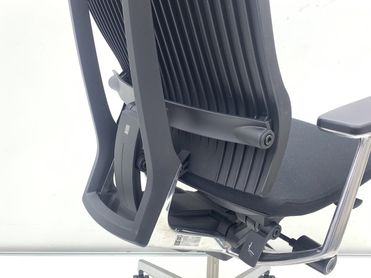 見た目は少し硬そうに見えるエラストマー素材ですが、座ってみると程よいしなり具合のやわらかな座り心地で、背中が痛くなるようなことはまるでありません。面ではなく線で支えることで、背面の通気性の良さは抜群です。
