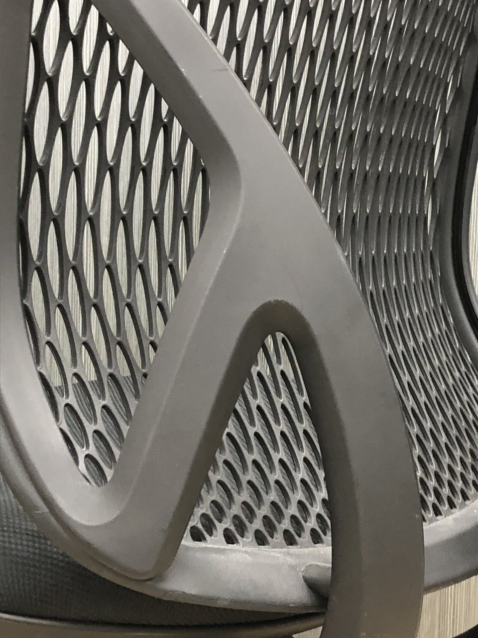 流動的なフォルムの背もたれは、樹脂製のメッシュ使用となっていて