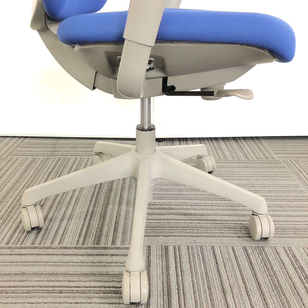 なので、「どれでも同じでしょう」と過小評価されがちですが、さすがのオカムラ製!座面の無段階上下調整やリクライニングの反発の強さ調整などに加え、リクライニンする際に足首の位置を支点にして動く、アンクルチルトリクライニングという特殊な機構が搭載されています。「人間が寄りかかる動き」にぴったりとフィットし、快適さをもたらしてくれます。