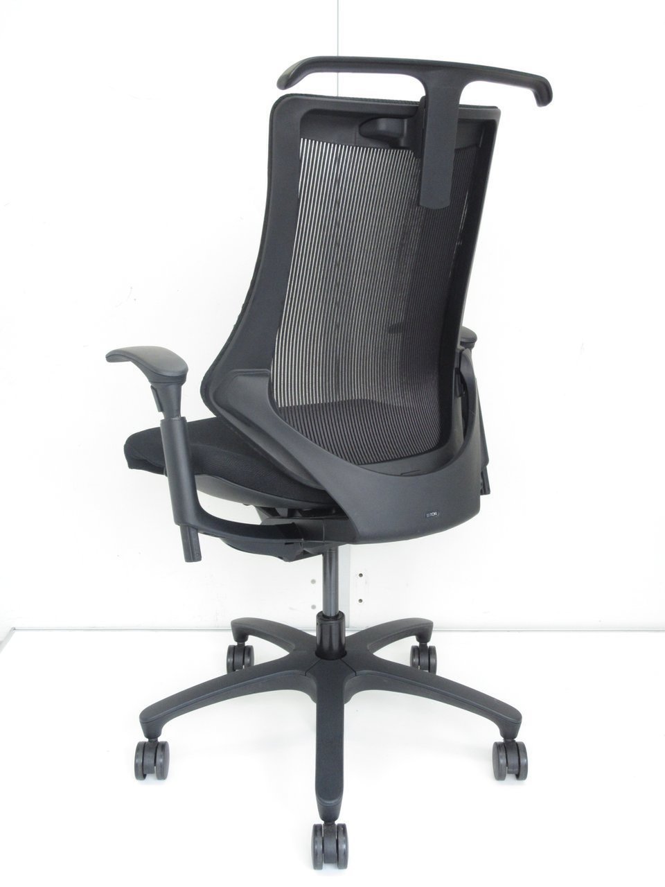 【三次元フォルムが腰にフィット!】希少なエラストマータイプ! ■イトーキ製 エフチェア 肘付 ブラック ハイバック ■姿勢の変化にフレキシブルに対応!
