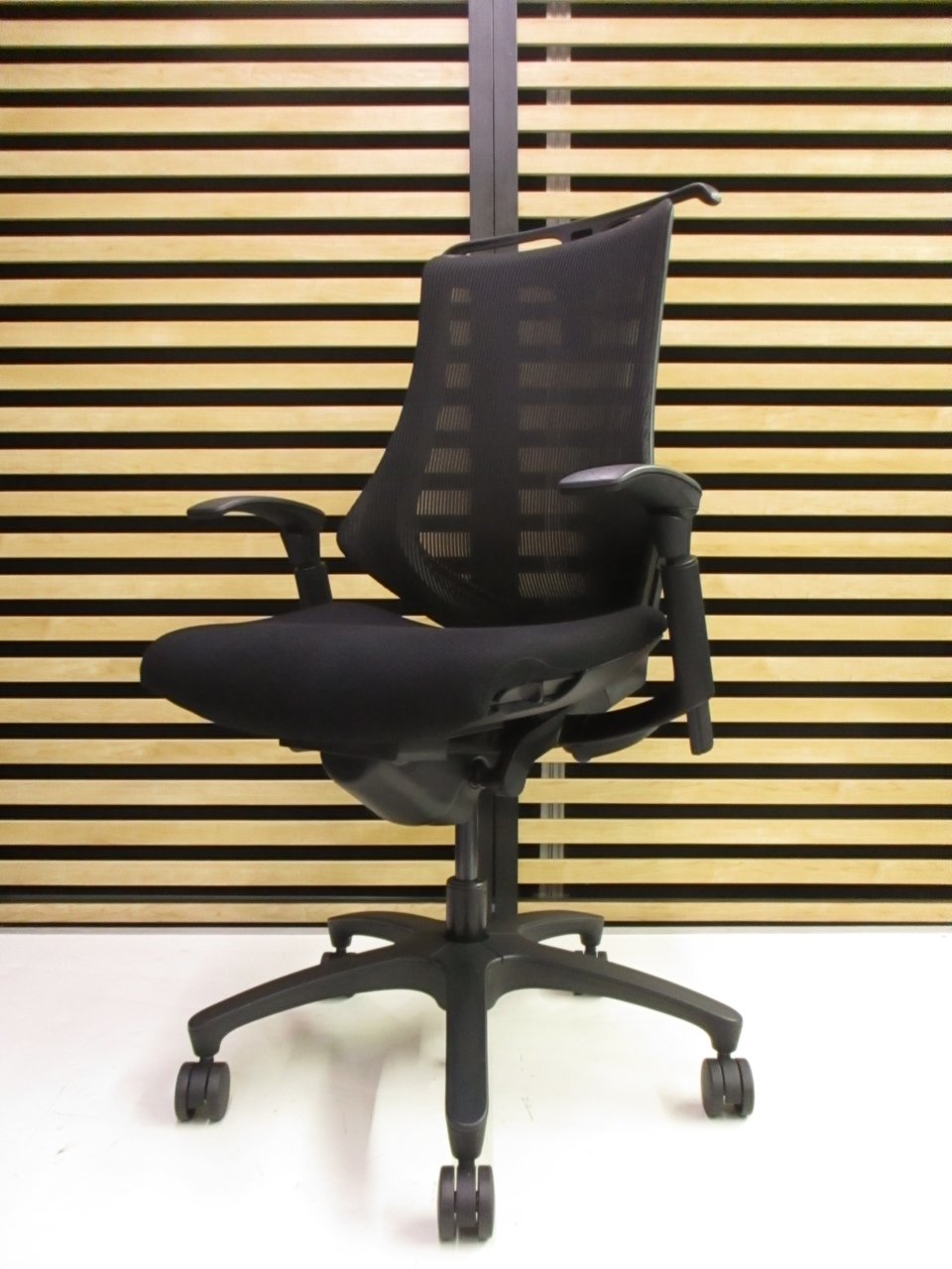 ブラックでメッシュで高機能チェアなチェアとなっております。