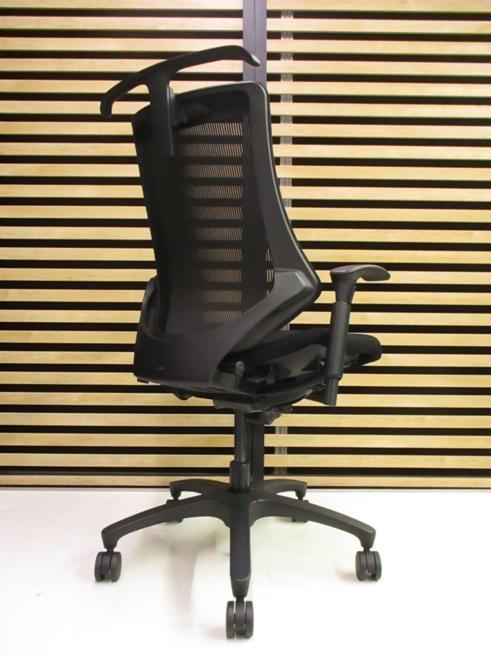 【三次元フォルムが腰にフィット!】希少なエラストマータイプ! ■イトーキ製 エフチェア 肘付 ブラック ハイバック ■姿勢の変化にフレキシブルに対応!