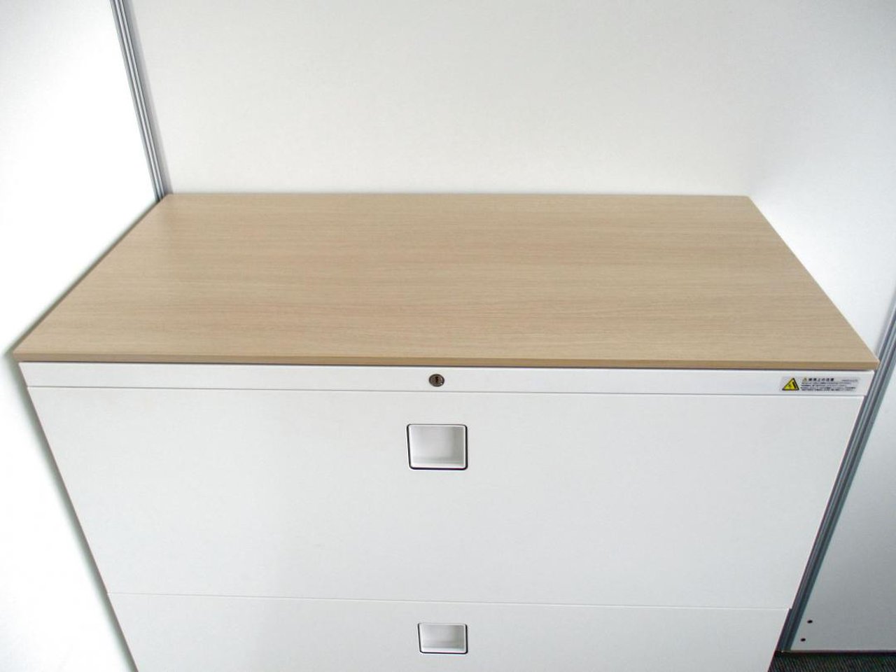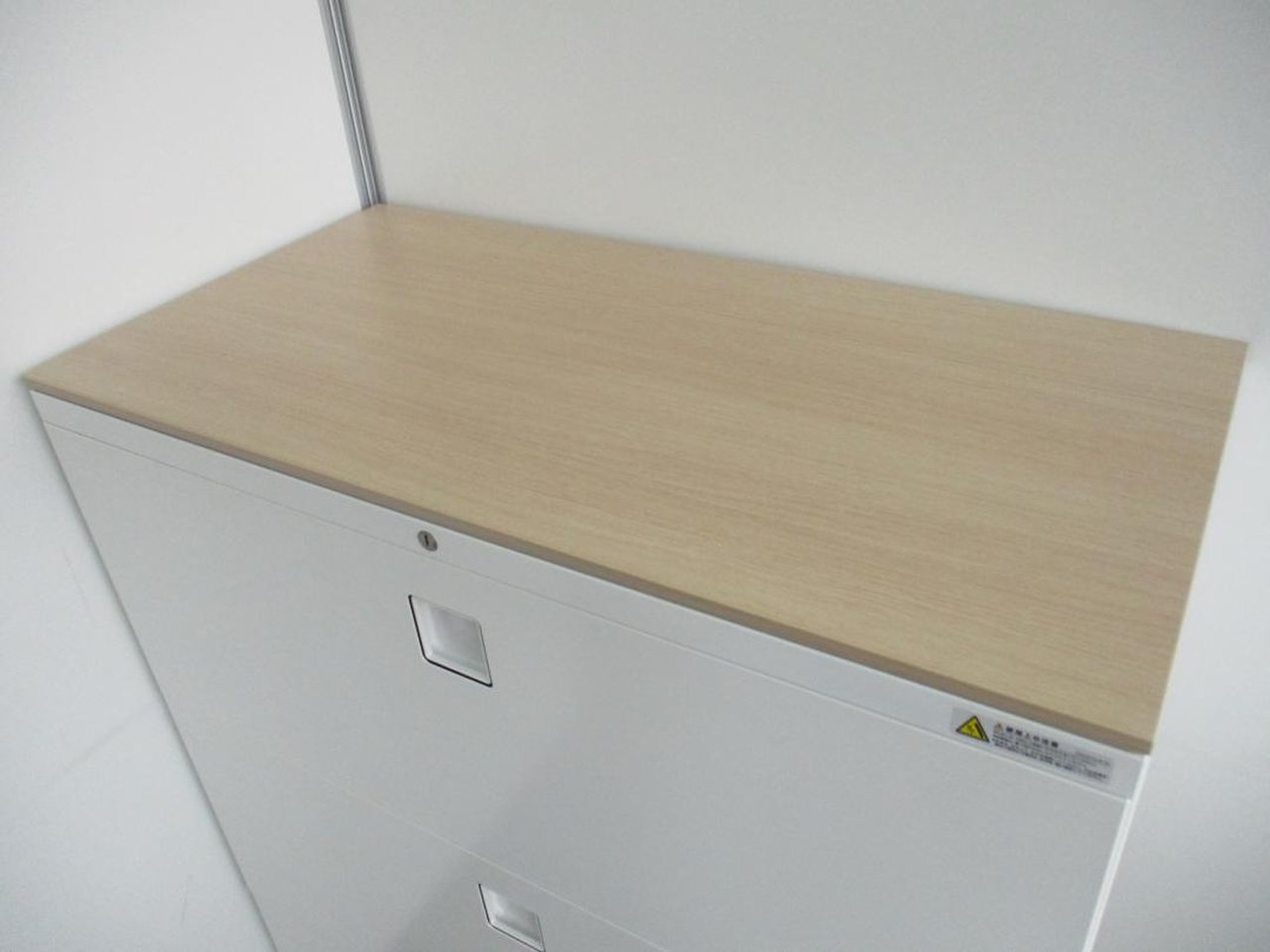 【在庫入替セール】オカムラ レクトライン 3段ラテラル書庫 ホワイト天板 シリンダー錠 鍵付き ※取っ手部分に若干日焼けあり