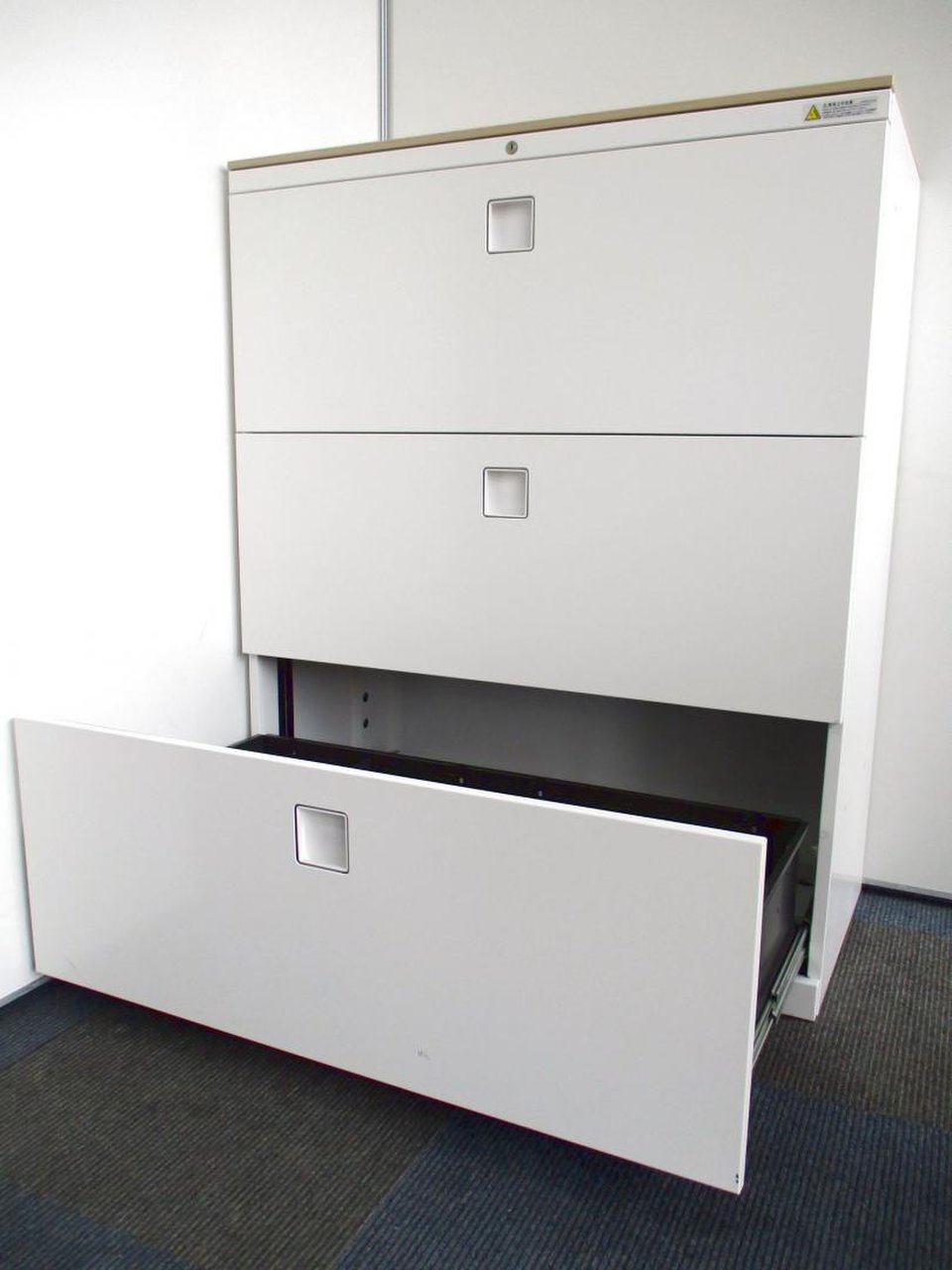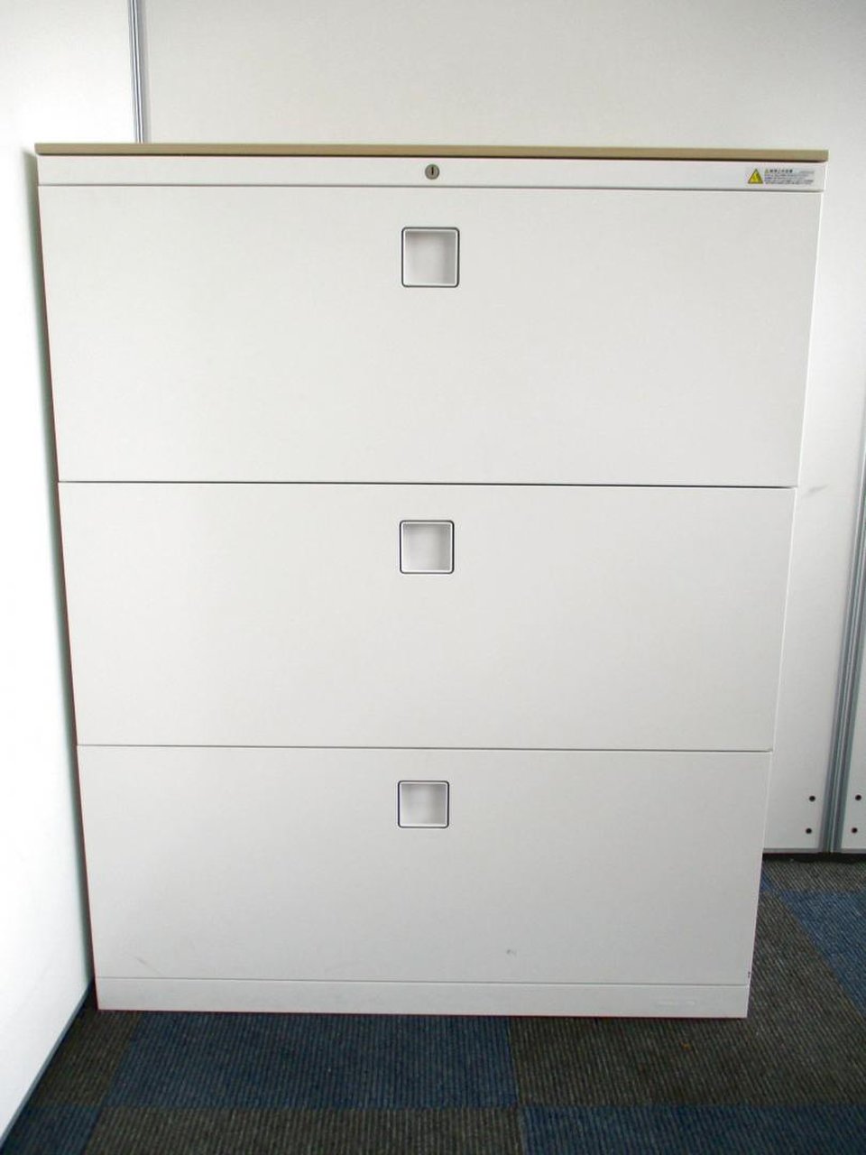 ★【T1】【T12】【商品入替のため、残り3台限り】オカムラ製 レクトライン ホワイト 高品質で使いやすい! 大容量の3段キャビネット! 3段ラテラル書庫!!【管理番号:A01032936】