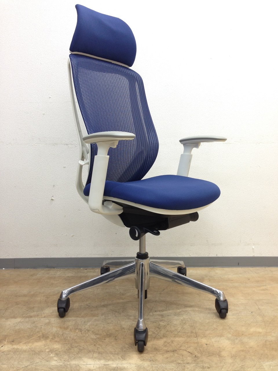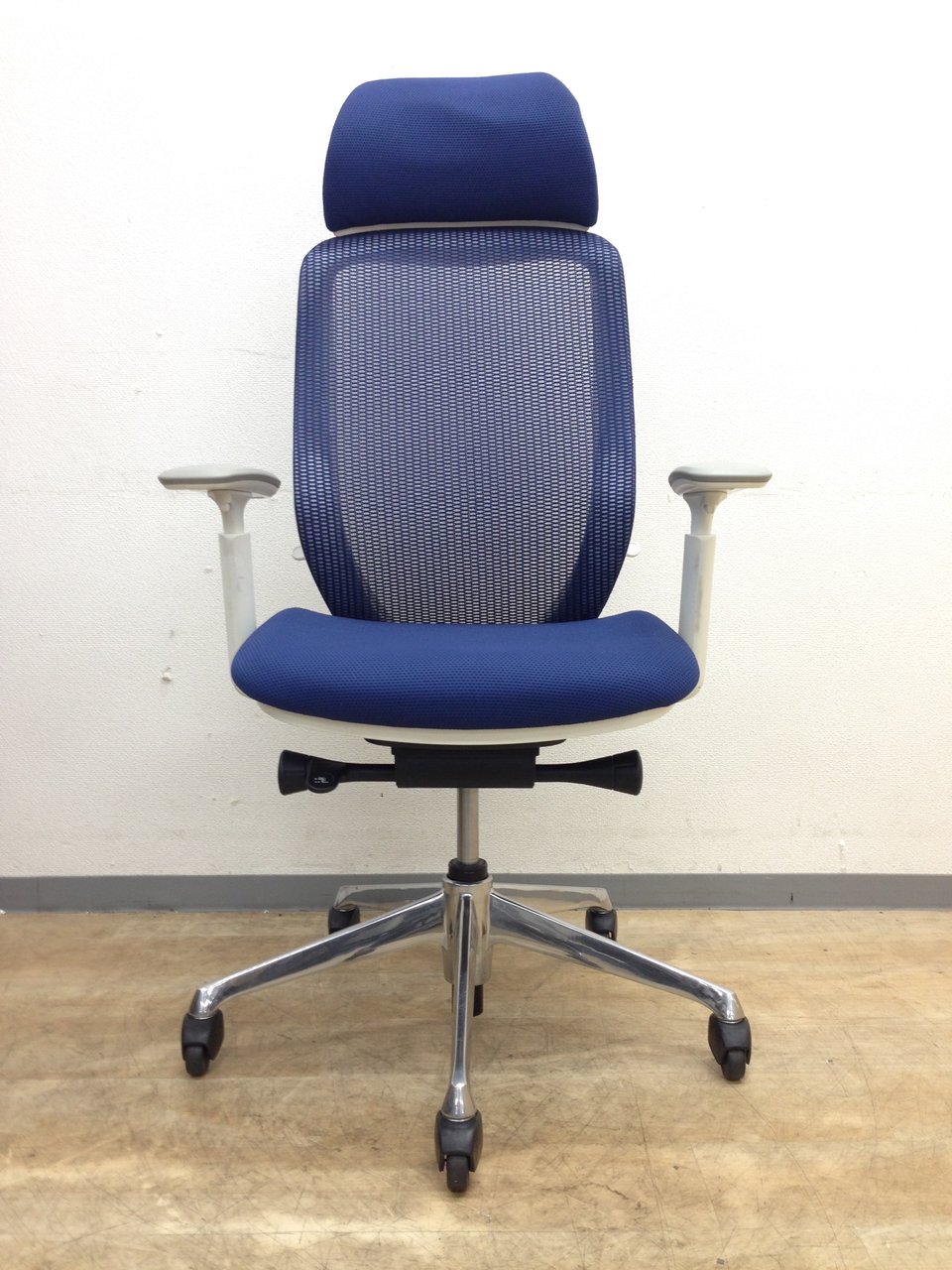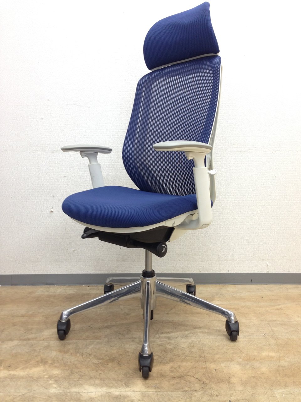 【新品ヘッドレスト交換済み】オカムラ/シルフィー/ブルー/可動肘