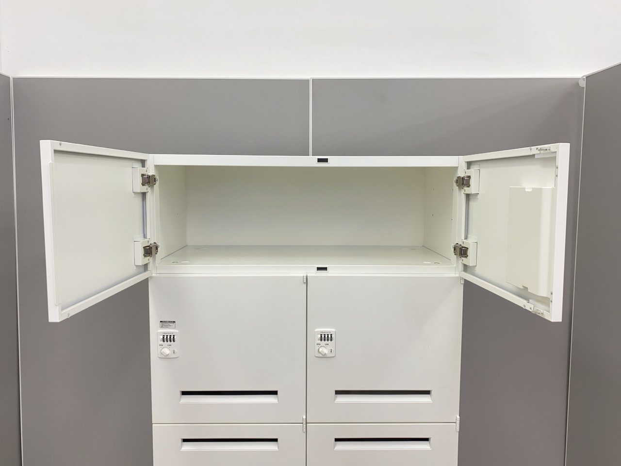 【激レア品入荷!】 上段と下段にファイル収納ができる4人用パーソナルロッカー! オカムラ製/レクトライン ※ダイヤル解除キーは別途見積もりです在庫がある店舗一覧