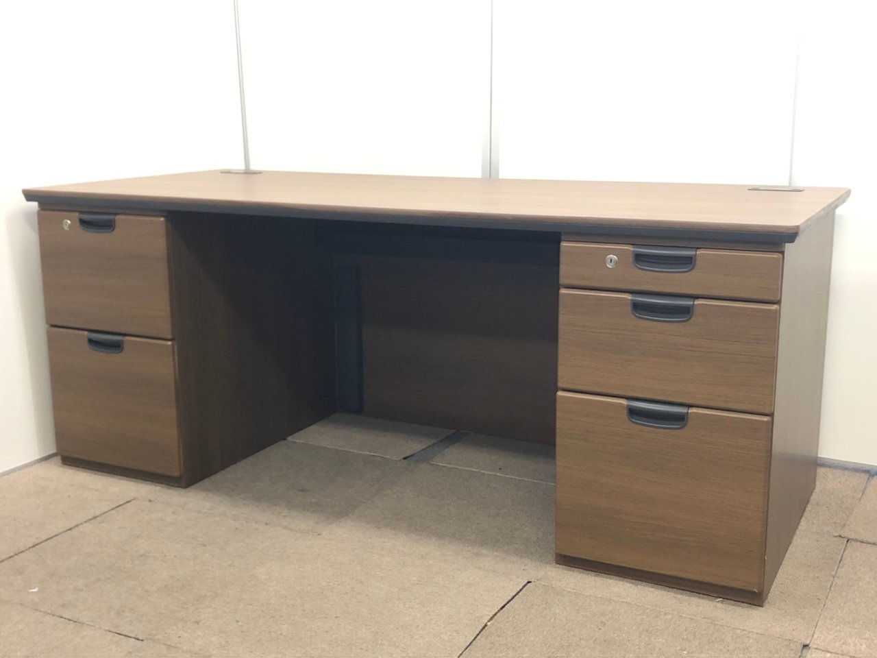【定価約30万!】 【役員様におすすめ!】 鍵ついてます! 重厚感溢れる両袖机が入荷! オカムラ製/DX-4Nシリーズ/ネオウッドダーク- 在庫数