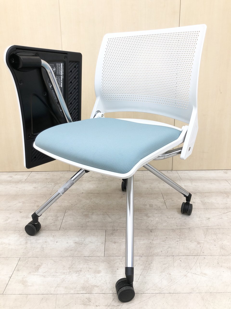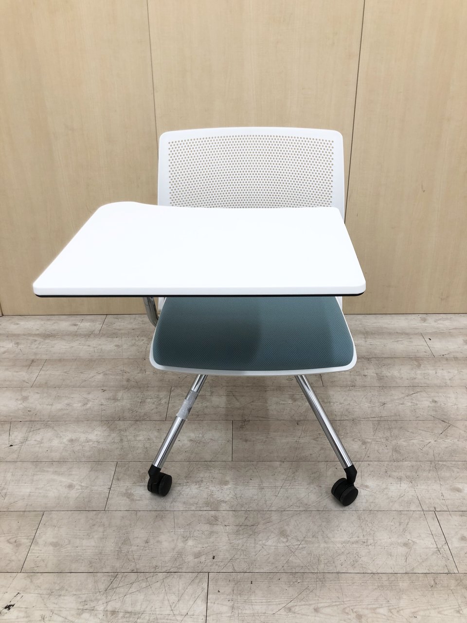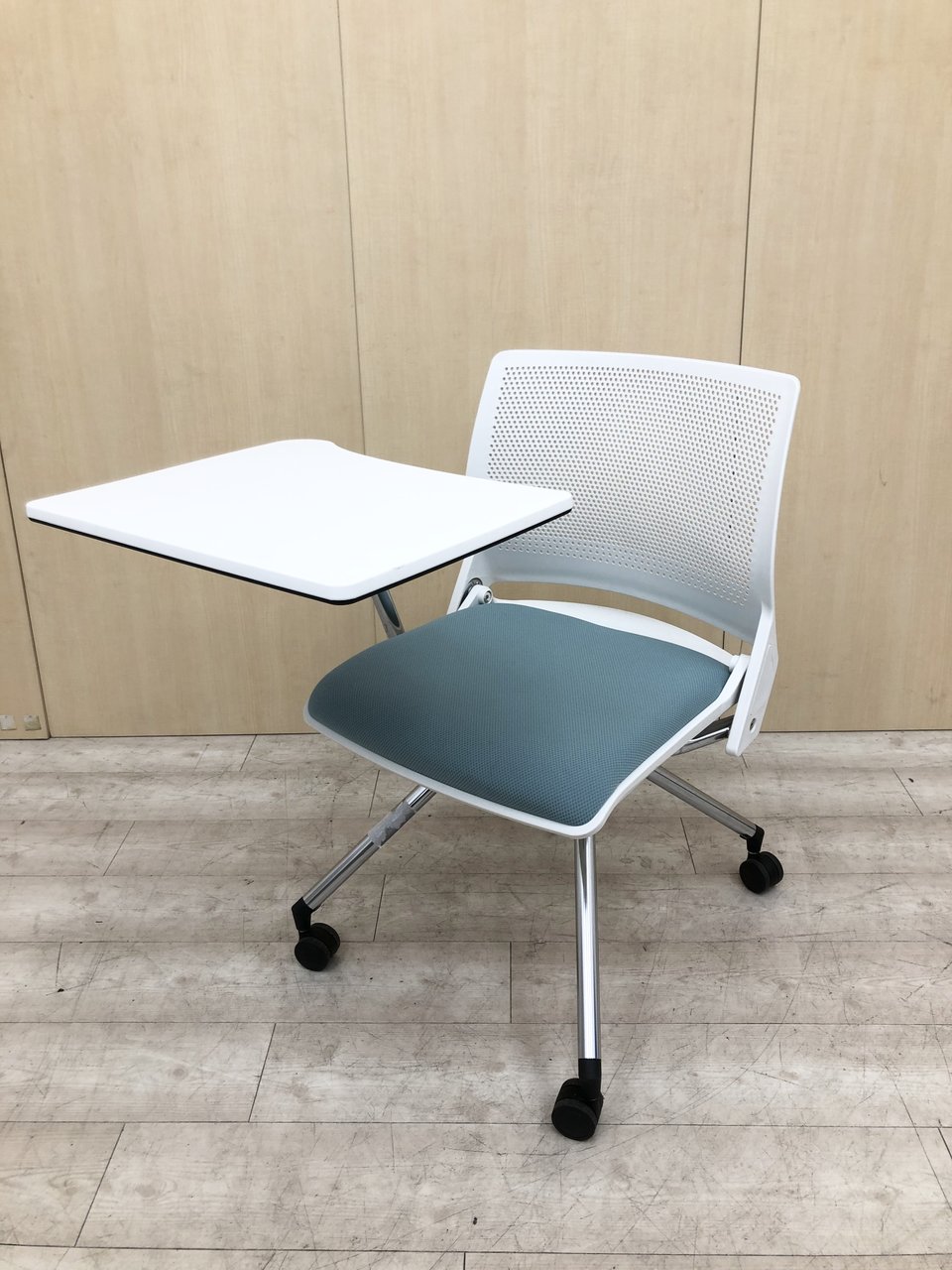 メモ台付きで便利!残り3脚限りです!オカムラ/クリール/テーブル付き/ブルー【RP】- 埼玉本店