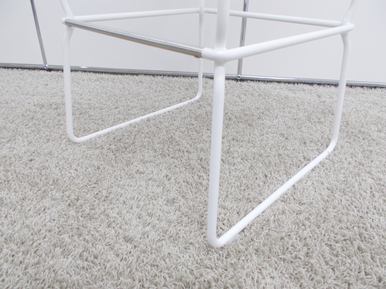 細いスティールロッドに美しくモールドされた座が載せてあるような軽やかなデザインのチェアです。