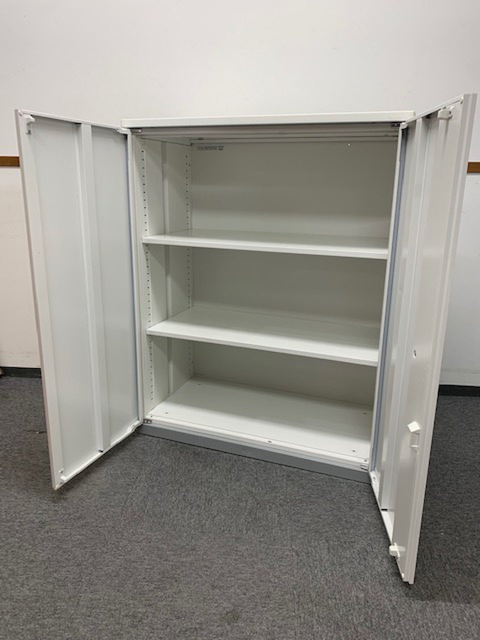 【訳アリ品】【オフィスの書類をスッキリ整理!】■イナバ製 TFシリーズ ローキャビネット 両開き書庫 H1100㎜ ■ホワイト ■シリンダー錠