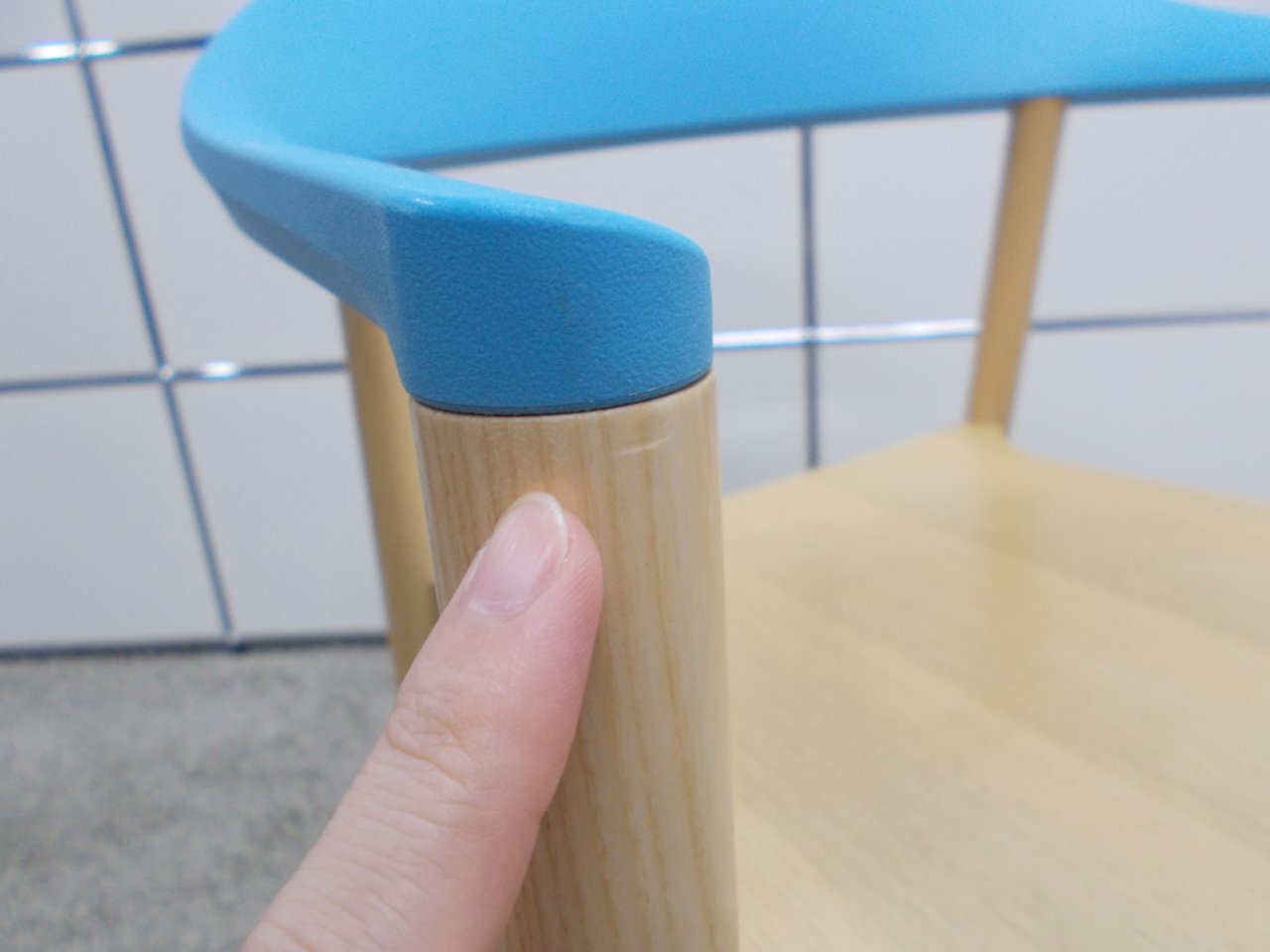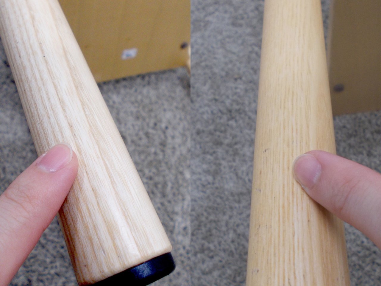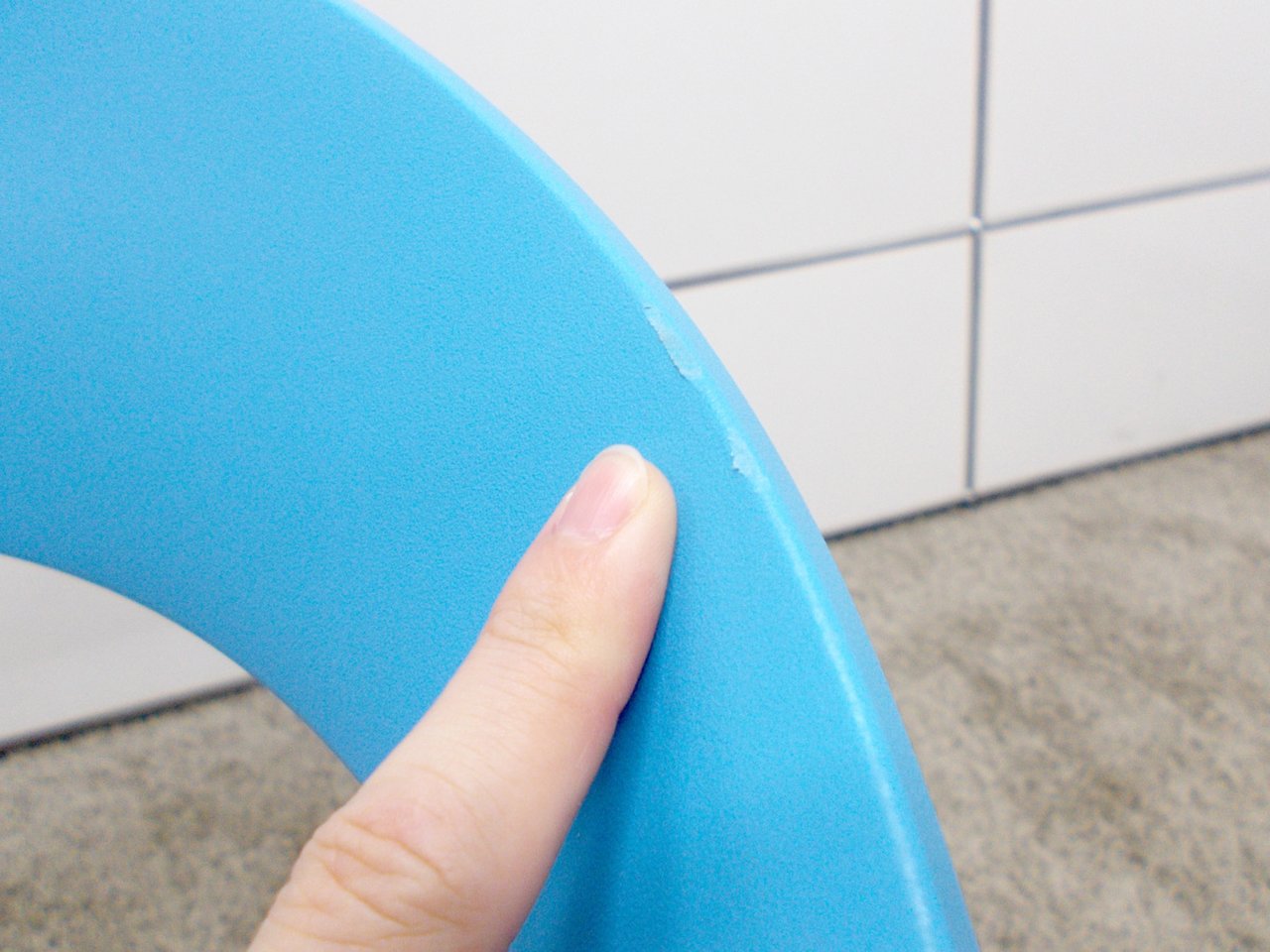- かなり強い濃い黄ばみ・変色が商品全体にある。(例、座面・背もたれ、脚部等にある。)