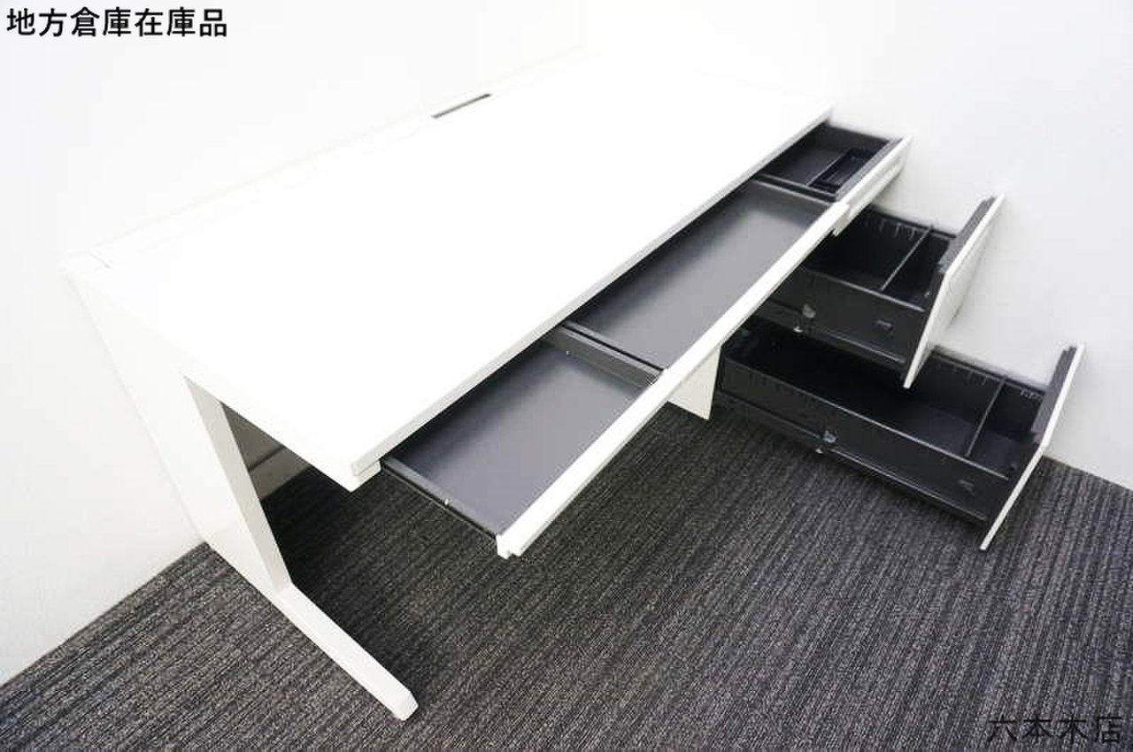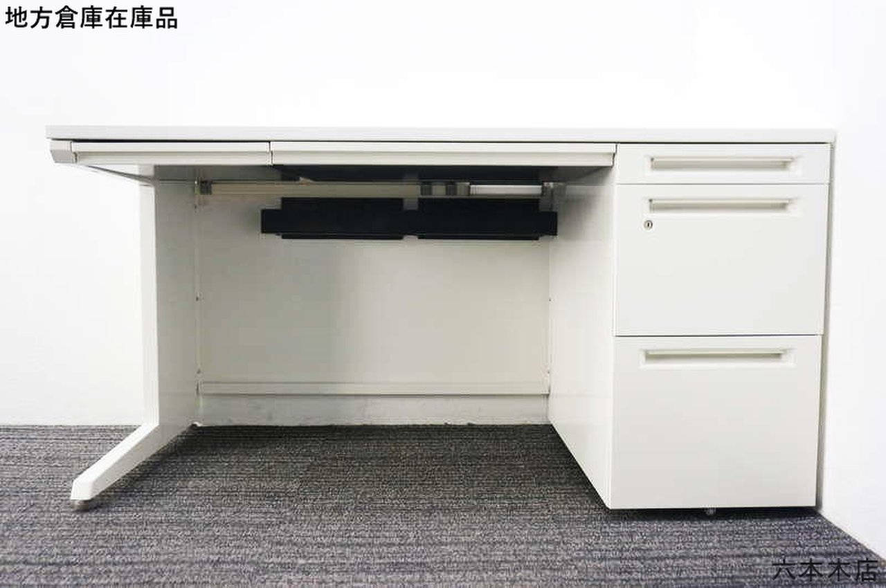 【セットでお買い得!横幅1400の平机と3段ワゴン!疑似片袖机】 オカムラ アドバンス ホワイト 引き出し付き ネオホワイト【収納が欲しいかたにはオススメ】
