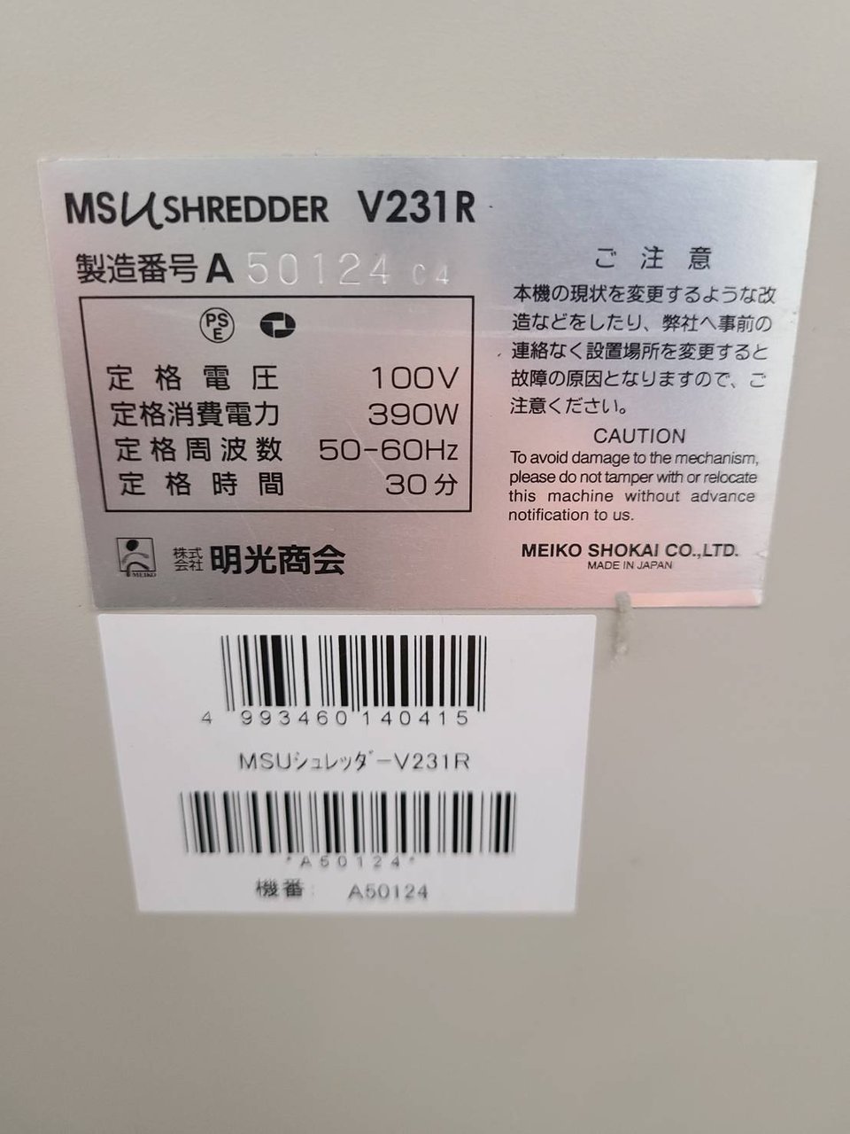 【中古】 MSシリーズ MS-V231-R 明光商会 シュレッダー 301358