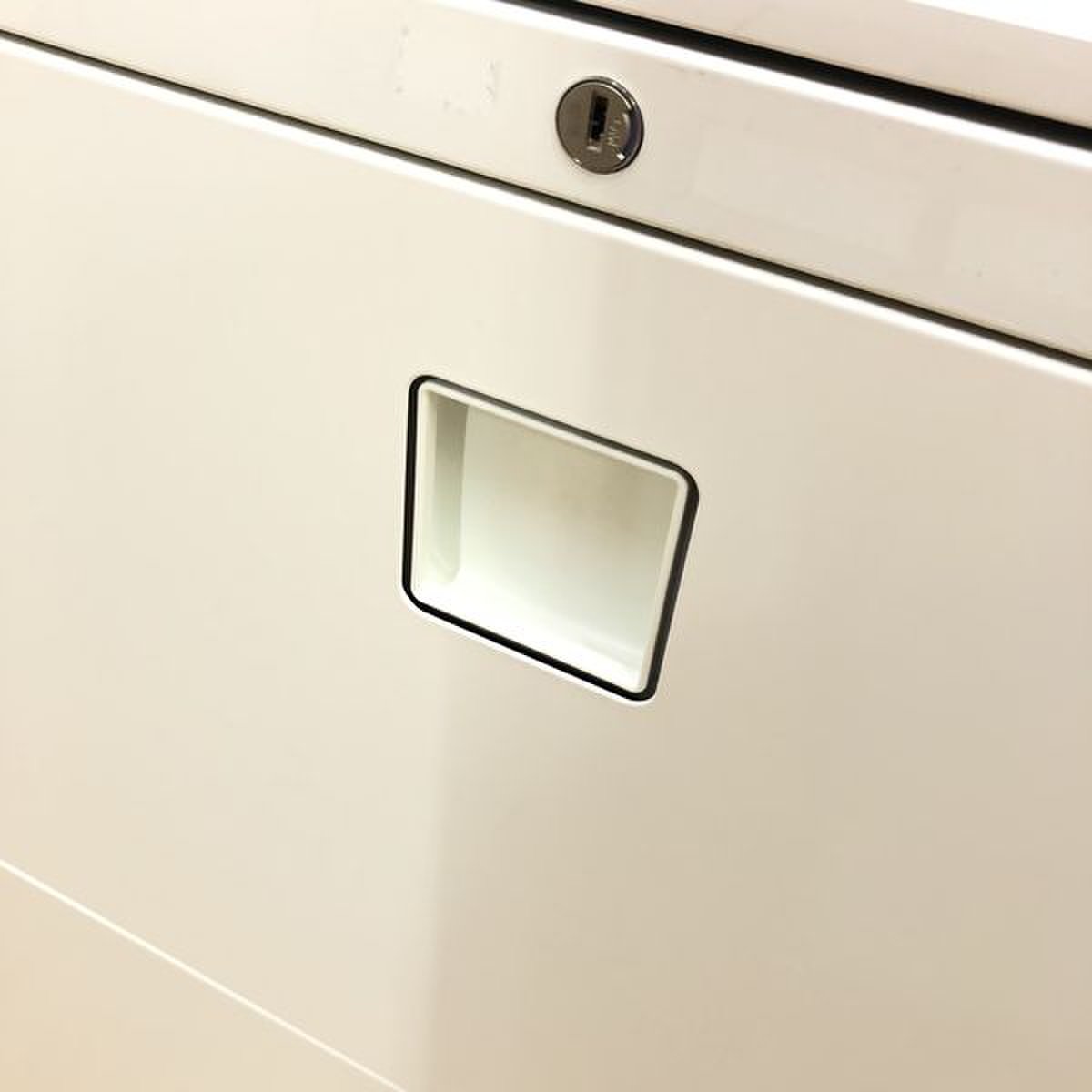 【オフィスの必需品!大容量の三段キャビネット!】■オカムラ(okamura)製 レクトラインシリーズ 3段ラテラル ローキャビネット ■ベース付 ■シリンダー錠 ■ホワイト 【弊社使用欄:A01037187】