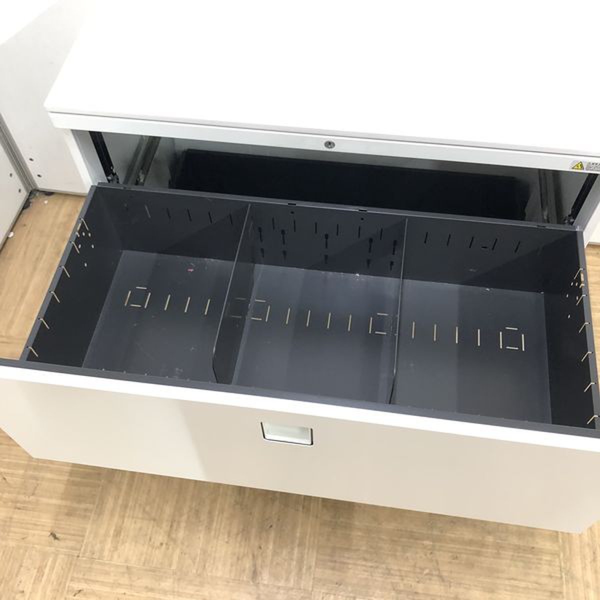【オフィスの必需品!大容量の三段キャビネット!】■オカムラ(okamura)製 レクトラインシリーズ 3段ラテラル ローキャビネット ■天板/ベース付 ■シリンダー錠 ■ホワイト 【弊社使用欄:A01037187】