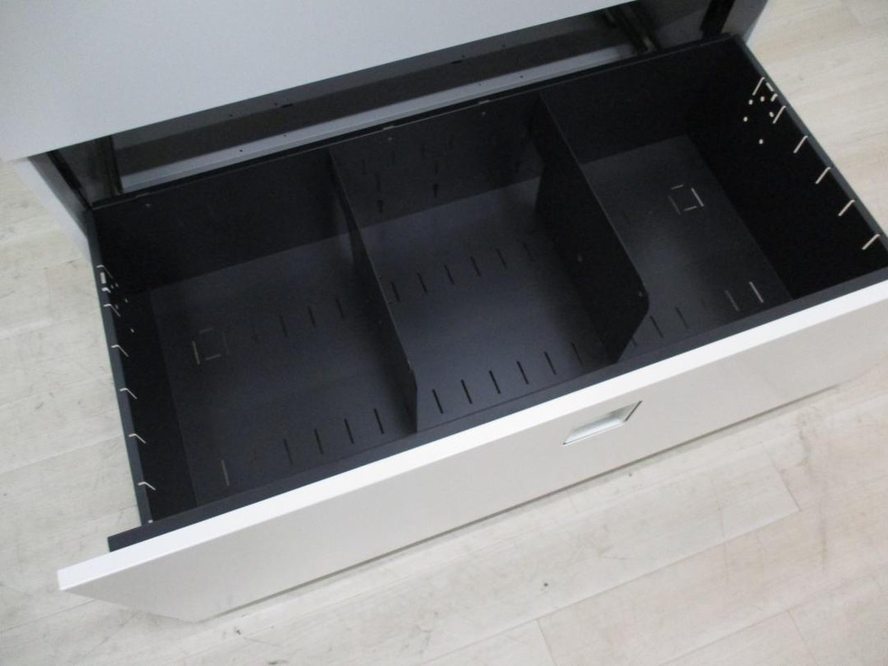 スライド式の扉+引き出しタイプの便利な書庫セットが入荷!使い勝手抜群のハイキャビネットが入荷! ■オカムラ/レクトライン/ホワイト 2枚引き戸+3段ラテラルキャビネット