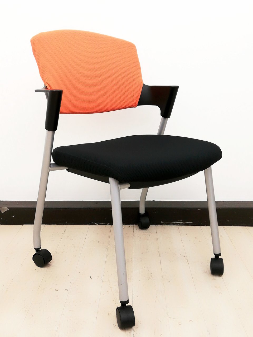 【シンプルスマートなスタッキングチェア!】■コクヨ(KOKUYO) プロッティ(Protty)チェア スタッキングチェア ミーティングチェア ■肘付き キャスター付き ■オレンジ【2505】弊社使用欄【A01018053】