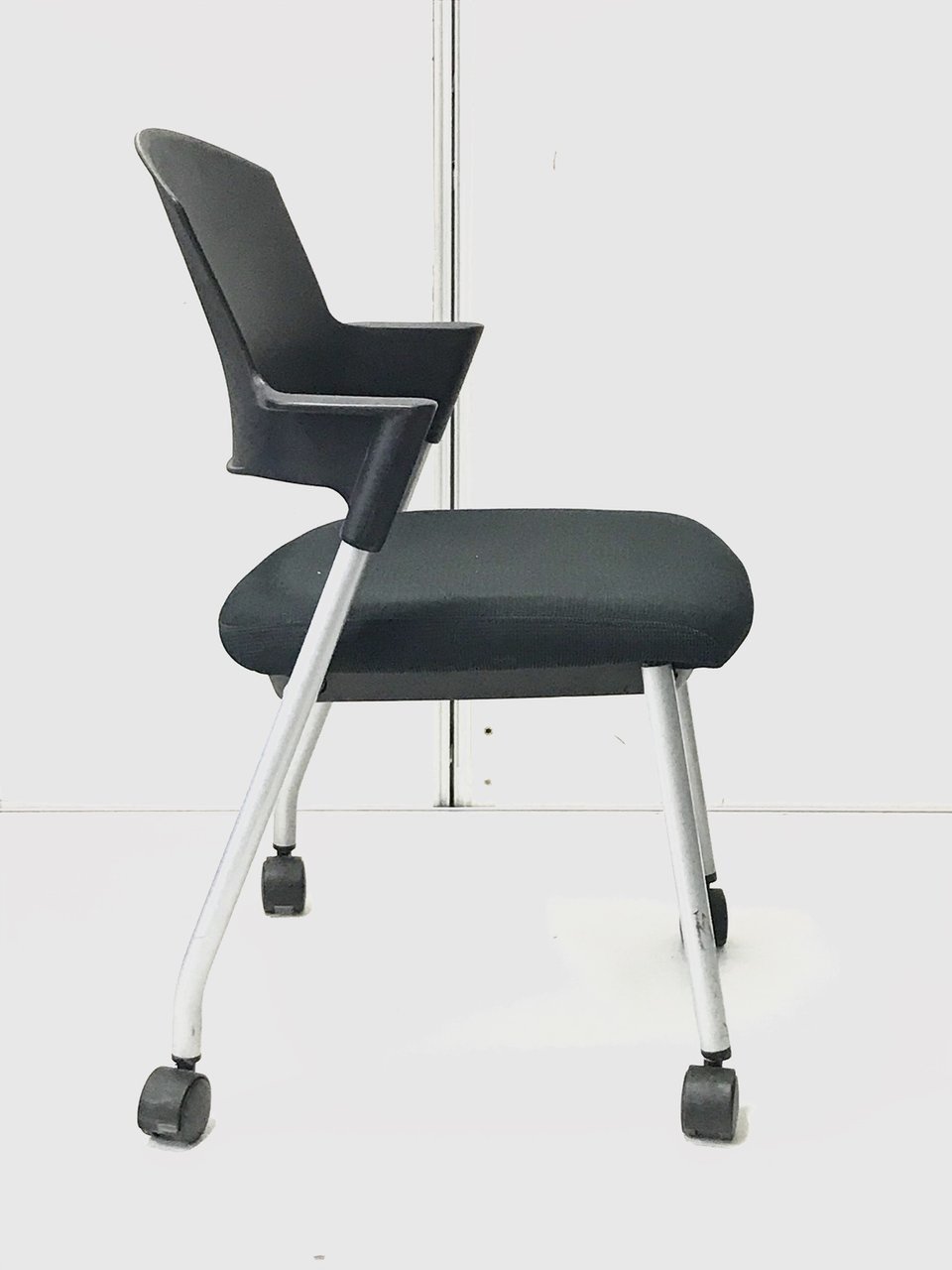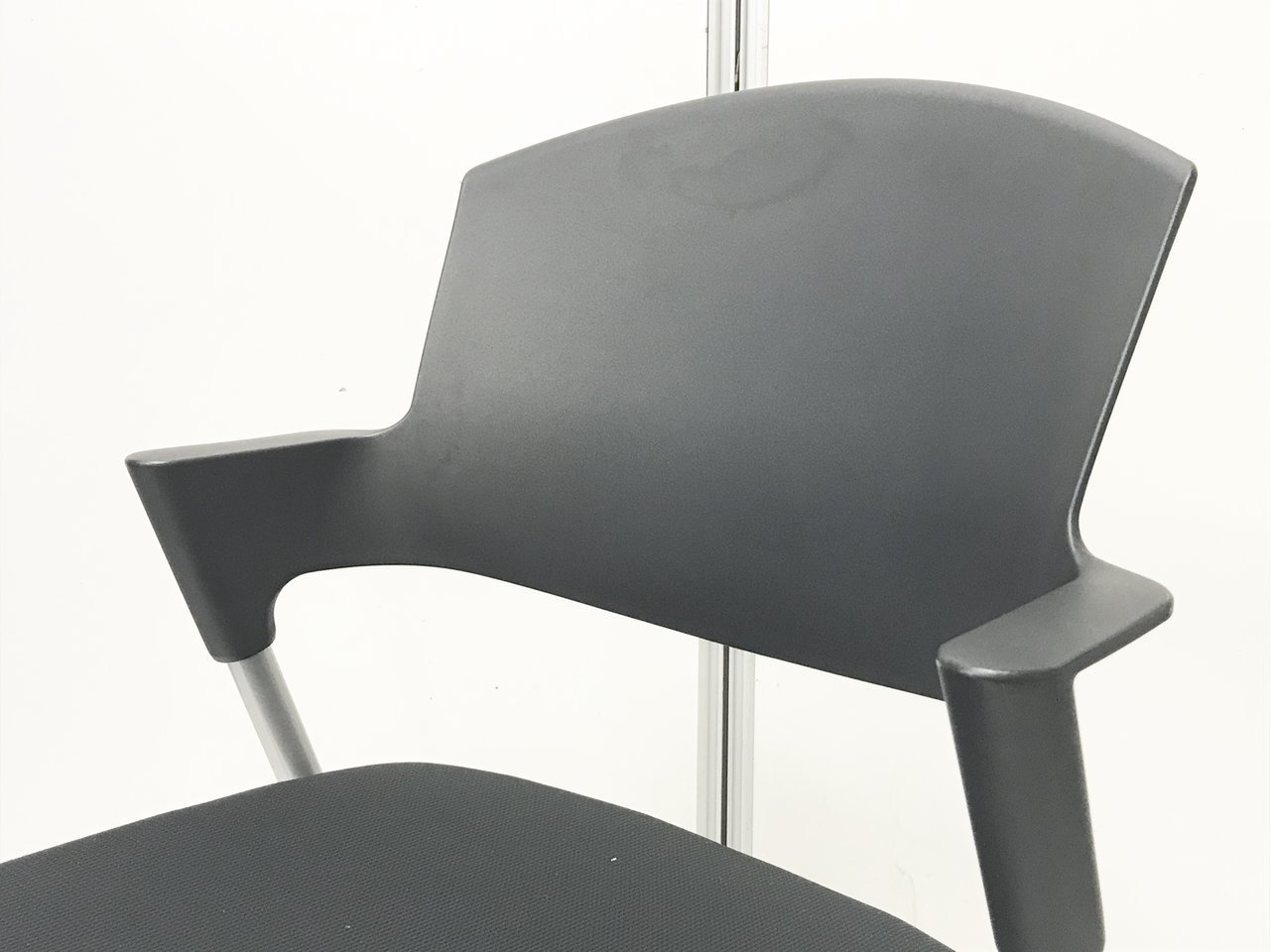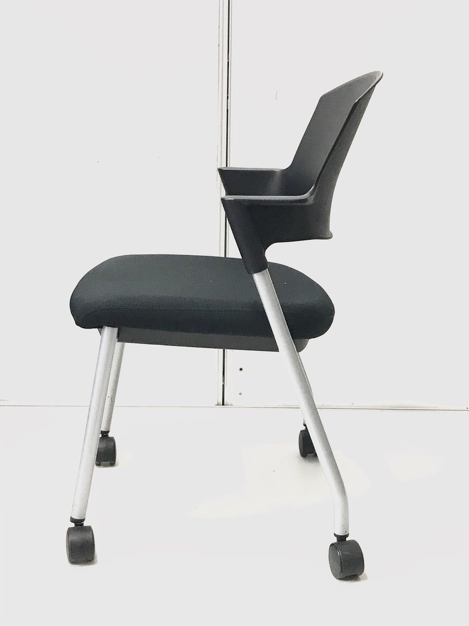 【シンプルスマートなスタッキングチェア!分厚いクッションで長時間でも快適な座り心地!】■スタッキングチェア 肘付ミーティングチェア ■固定肘 ■キャスター付 ■ブラック ■背面樹脂/コクヨ(KOKUYO/プロッティ