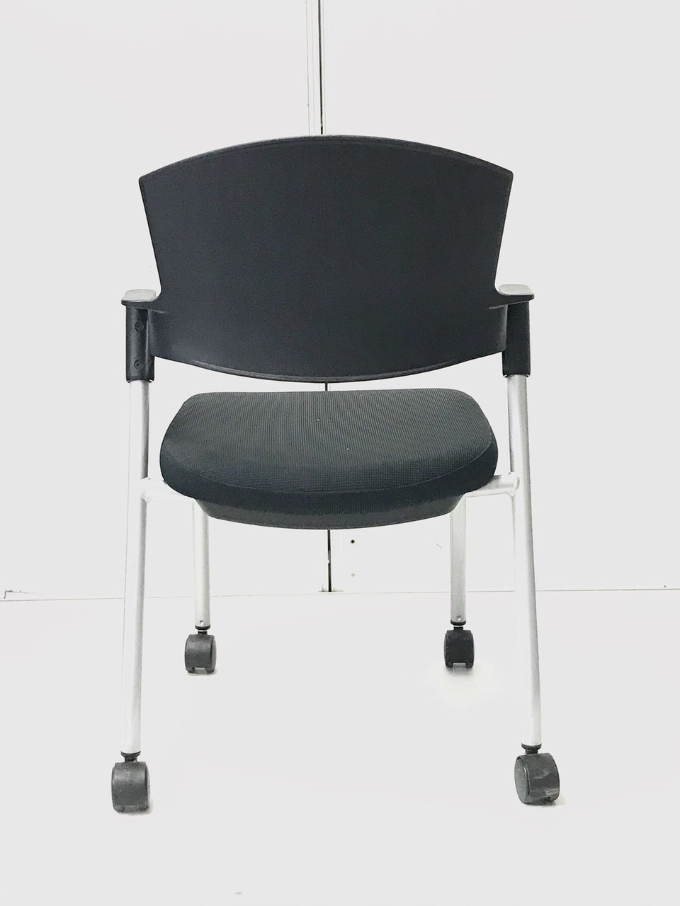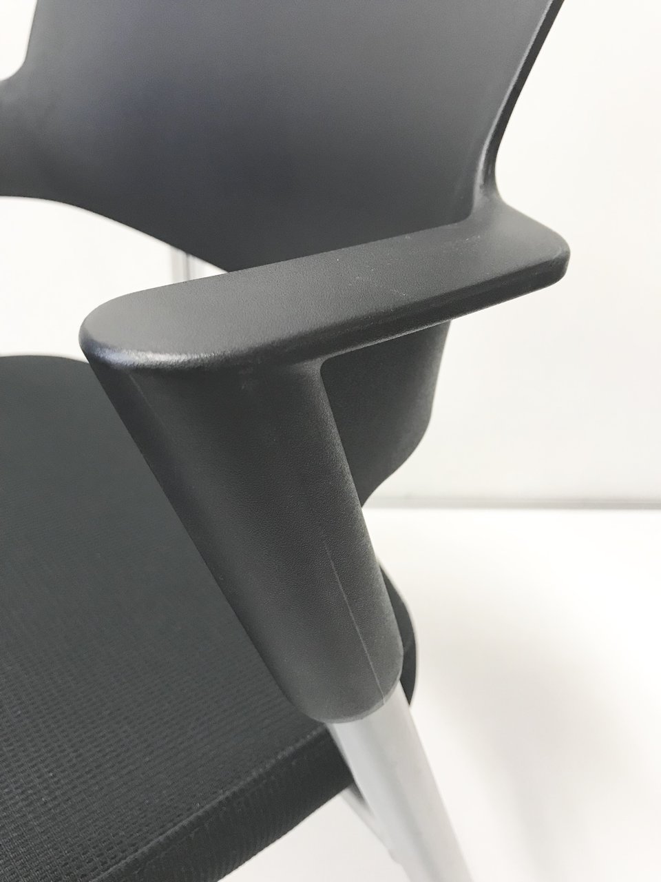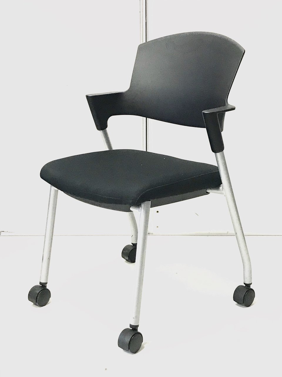 【シンプルスマートなスタッキングチェア!分厚いクッションで長時間でも快適な座り心地!】■スタッキングチェア 肘付ミーティングチェア ■固定肘 ■キャスター付 ■ブラック ■背面樹脂/コクヨ(KOKUYO/プロッティ