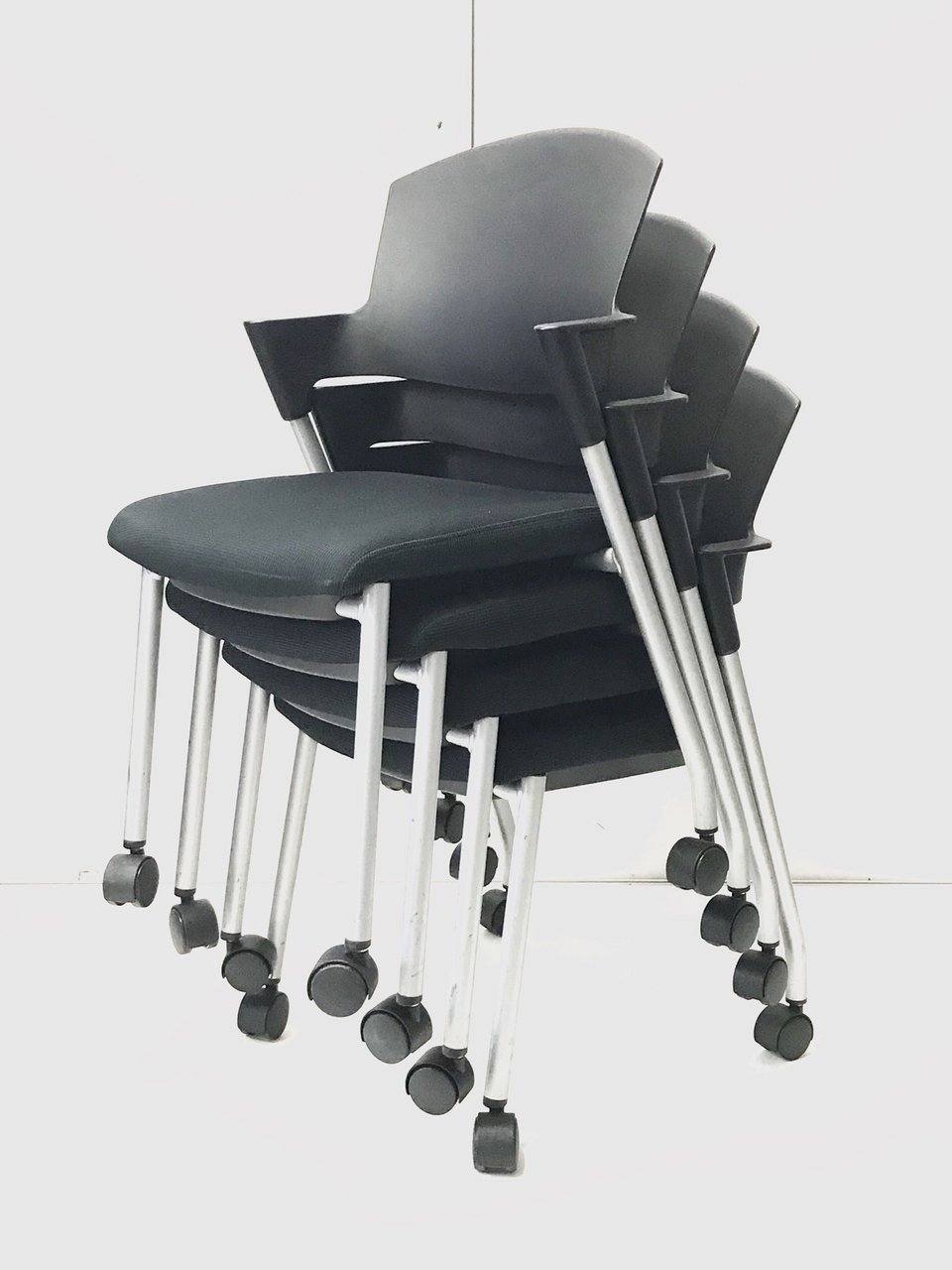【セット商品(チェア×4脚)】【シンプルスマートなスタッキングチェア!分厚いクッションで長時間でも快適な座り心地!】/オススメ(おすすめ) /人気商品【弊社使用欄:A01037619】■スタッキングチェア 肘付ミーティングチェア ■固定肘 ■キャスター付 ■ブラック ■背面樹脂/コクヨ(KOKUYO/プロッティ