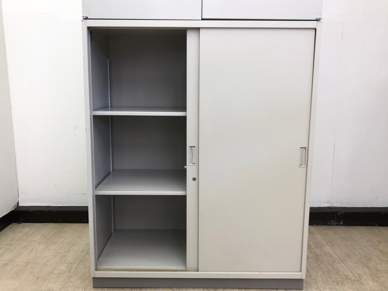 - 一部不具合ありそ引出の開閉不可、施錠不可、棚板無しといったの書庫の本来の効用を果たすための機能以外の一部が使用不可(例、扉、引出の開閉がしづらいなどがある。 )
