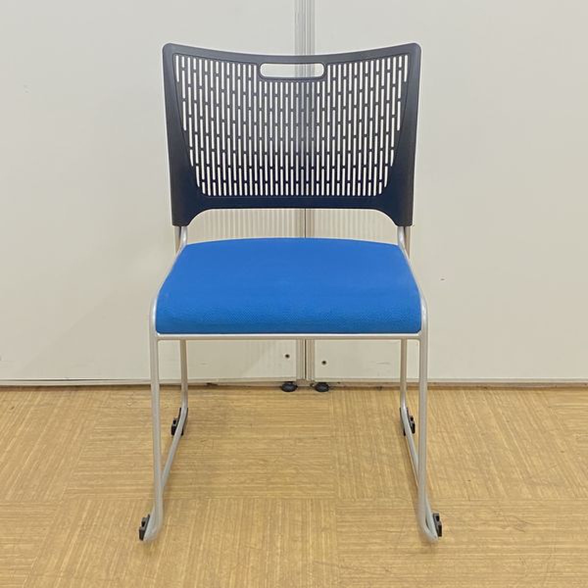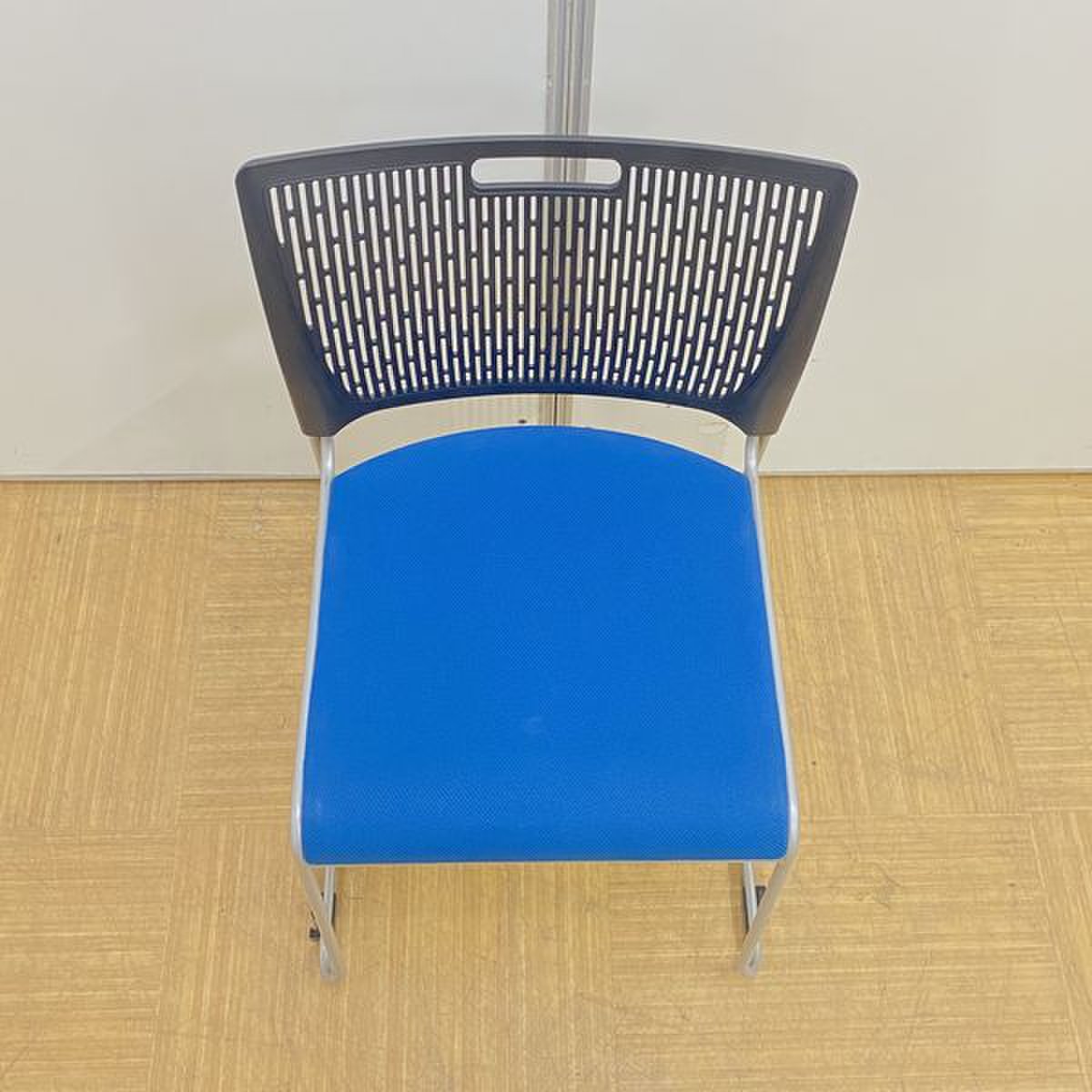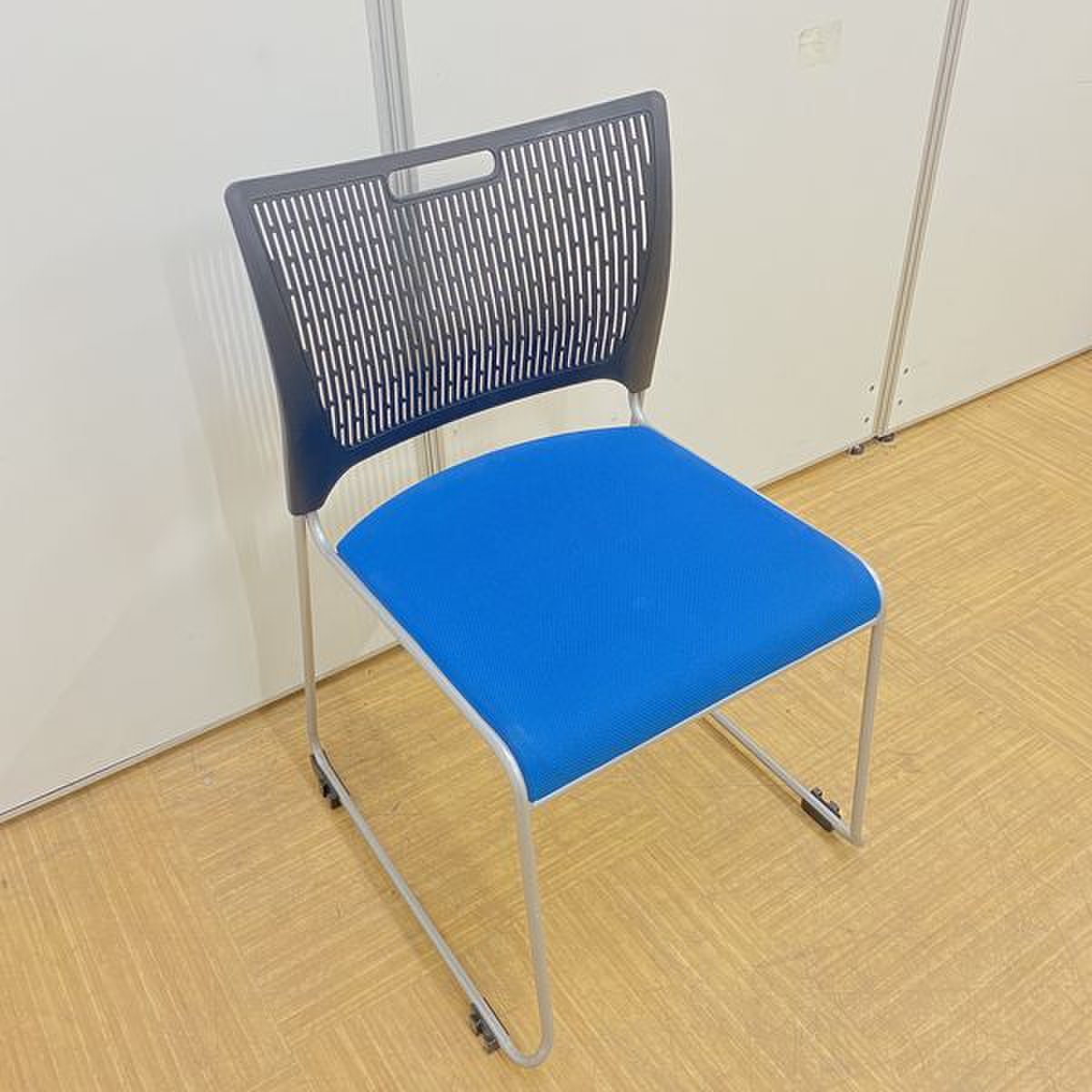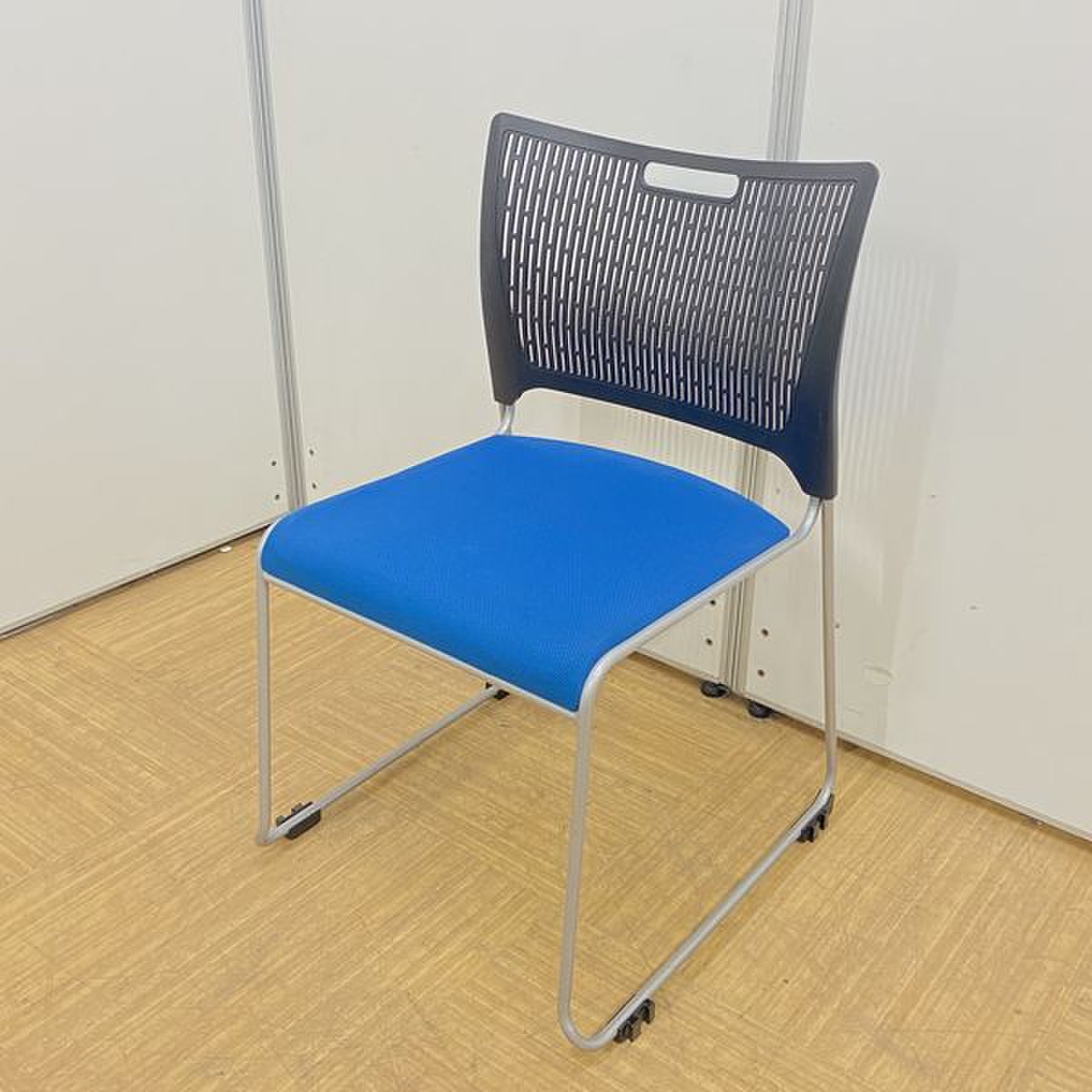 【重ねて収納可能!さわやかなカラーとシンプルデザイン!】■オカムラ製 レーテ スタッキングチェア ミーティングチェア ■キャスター付き ■座面ブルー×背面ホワイト【2412】弊社使用欄【A00990049】