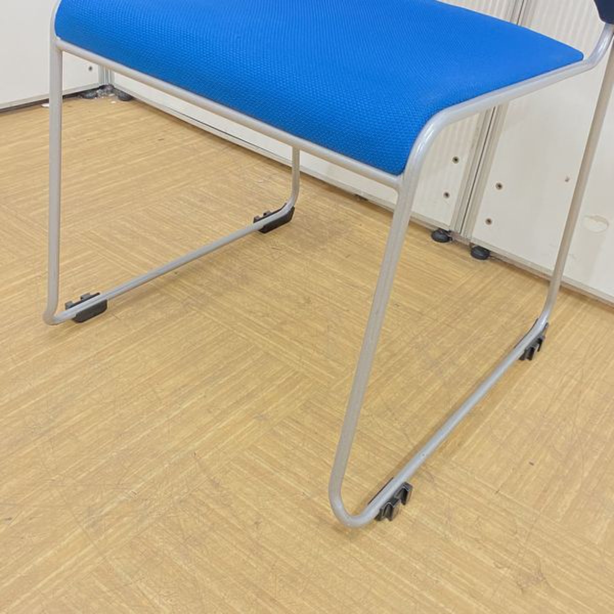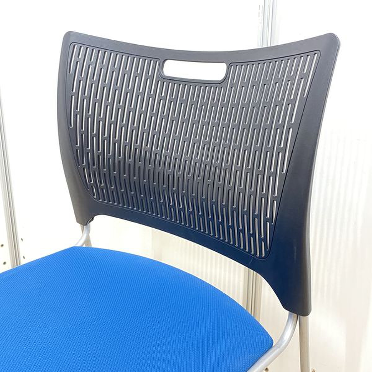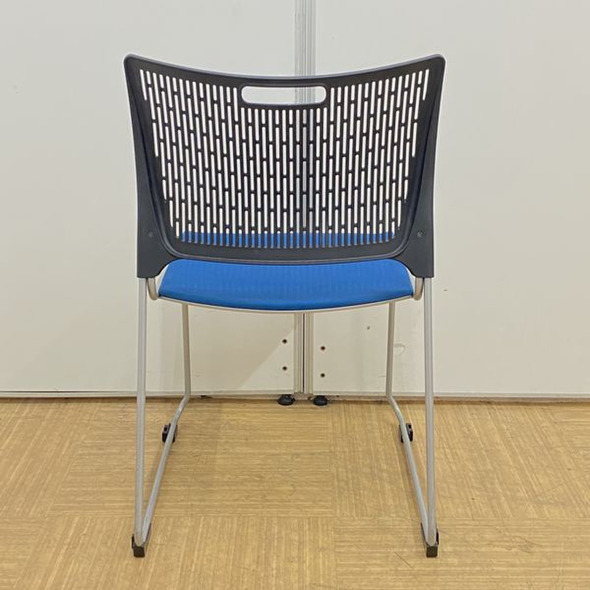 【重ねて収納可能!さわやかなカラーとシンプルデザイン!】■オカムラ製 レーテ スタッキングチェア ミーティングチェア ■キャスター付き ■座面ブルー×背面ホワイト【2412】弊社使用欄【A00990049】