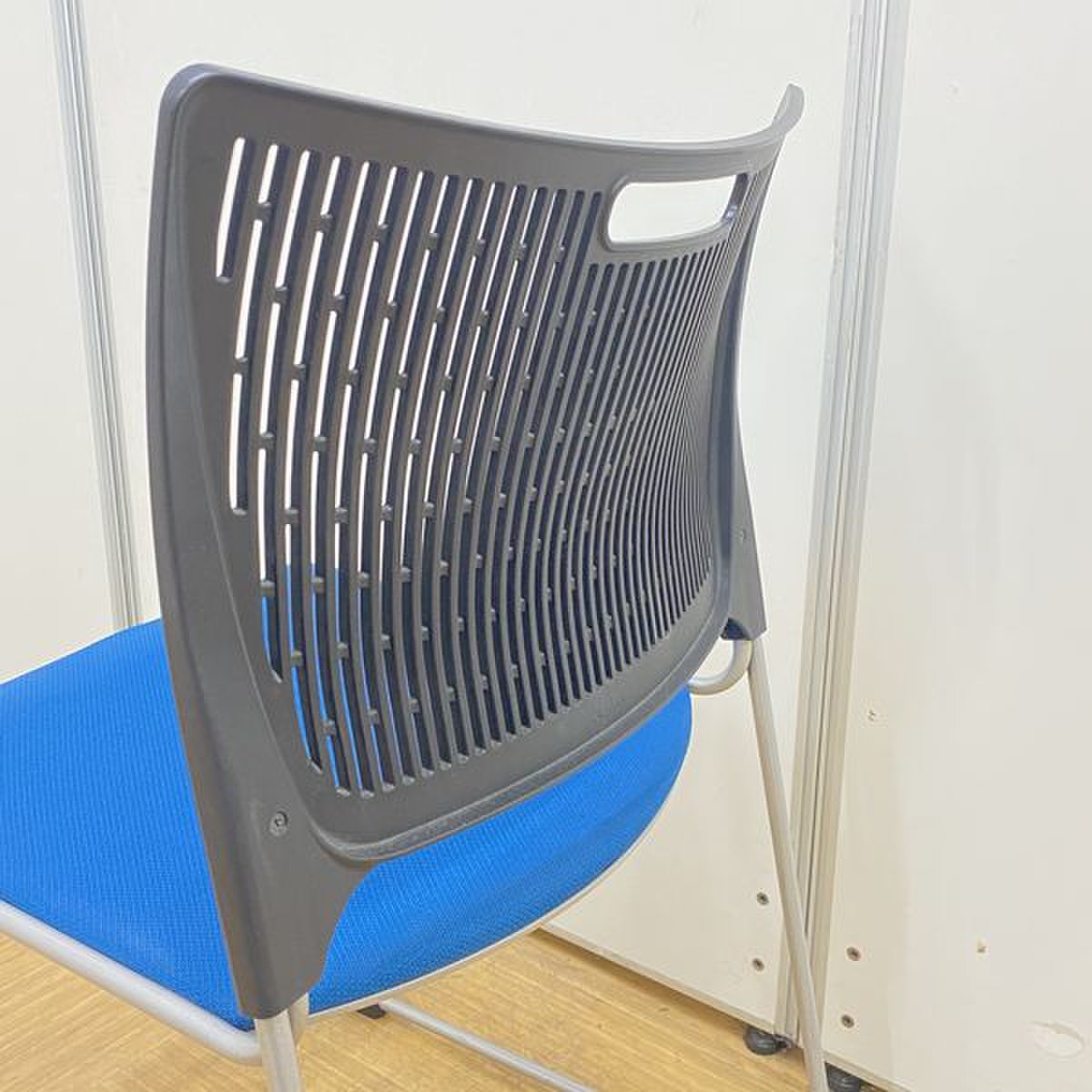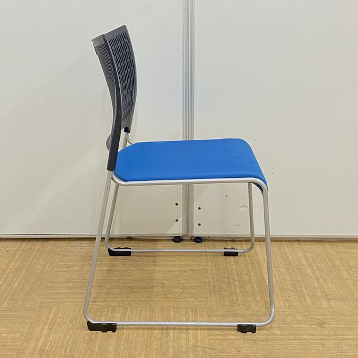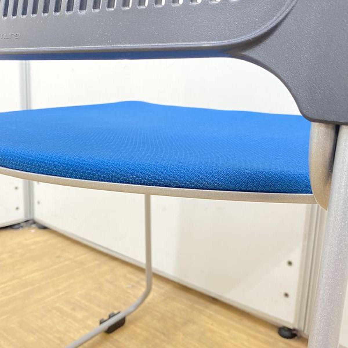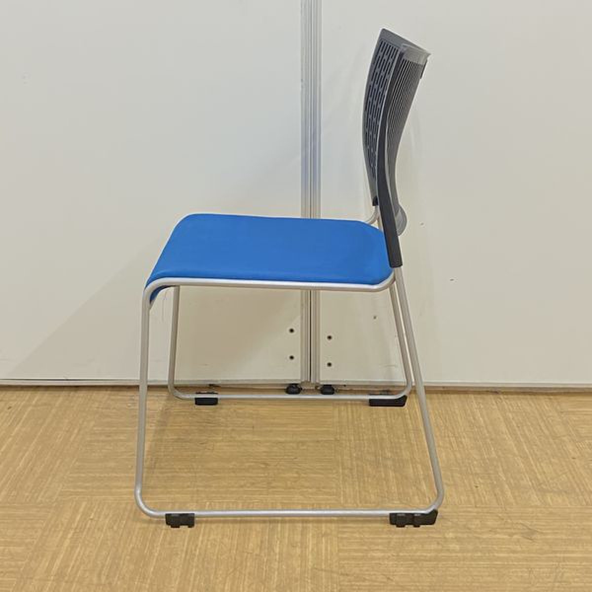 【重ねて収納可能!さわやかなカラーとシンプルデザイン!】■オカムラ製 レーテ スタッキングチェア ミーティングチェア ■キャスター付き ■座面ブルー×背面ホワイト【2412】弊社使用欄【A00990049】